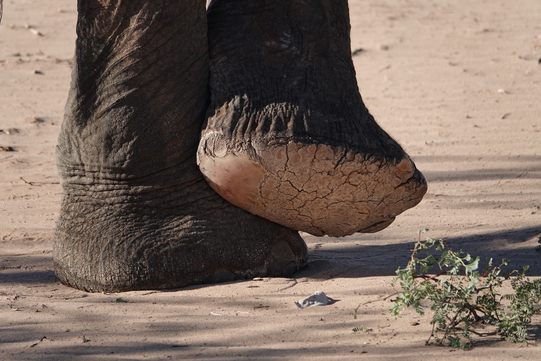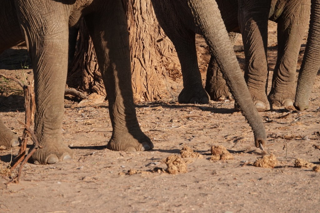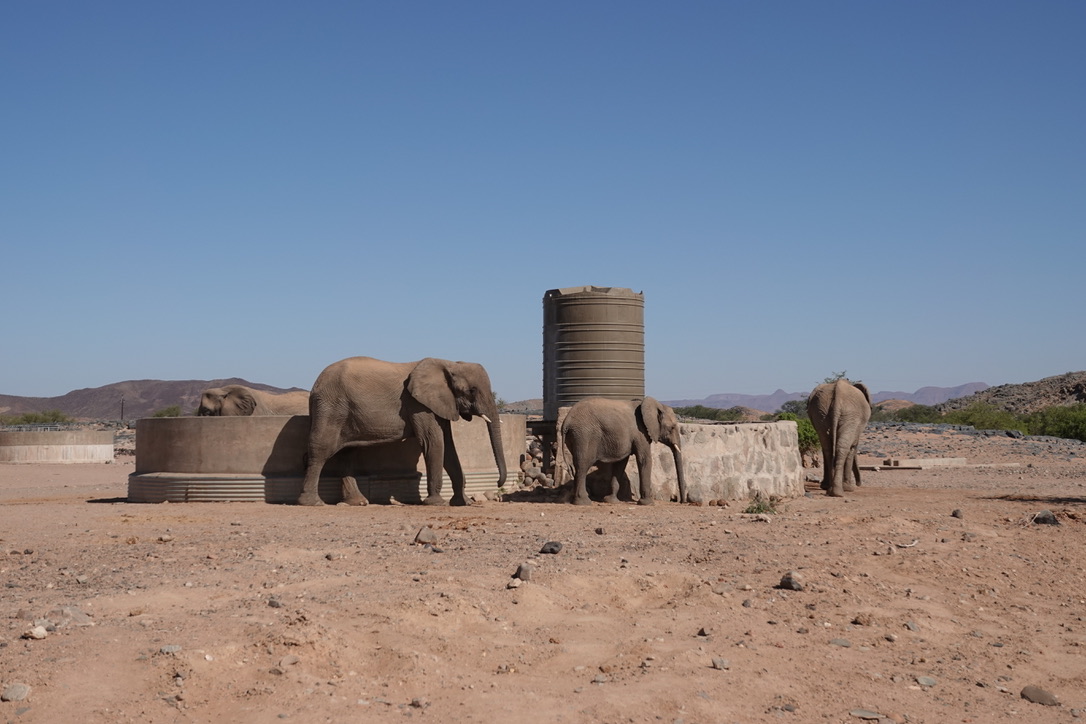 Le secret de leur survie est la connaissance des lieux de nourrissage et la compréhension du fonctionnement des rivières. Les matriarches gardent en mémoire l’emplacement des arbres dans les forêts galeries qui bordent les rivières. Elles utilisent aussi les réservoirs près des villages, comme celui-ci à De Riet, et les points d’eau artificiels mis en place par les lodges. Ce matin là, la citerne est vide… il leur faudra encore marcher.