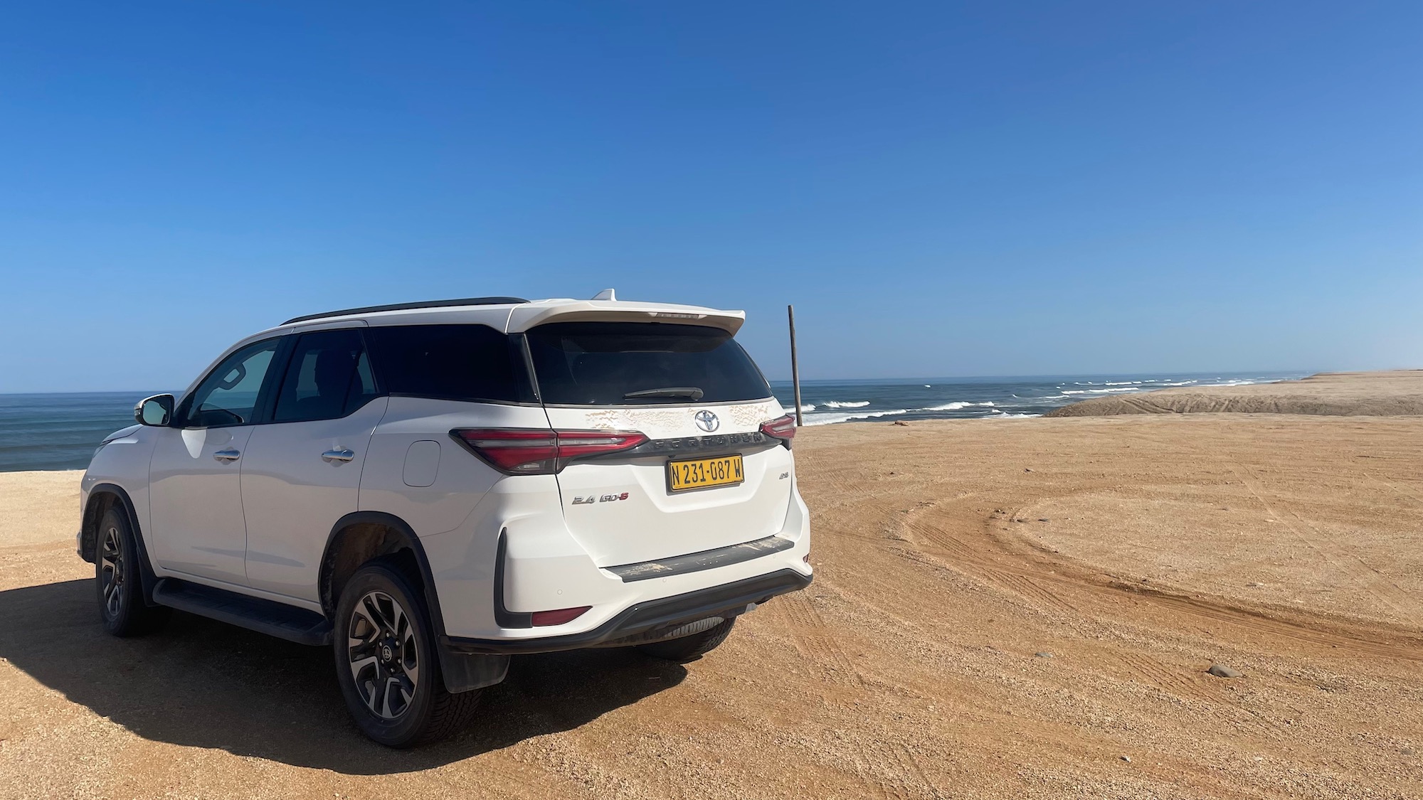 Nous faisons un arrêt au bord de l’océan, l’air brûlant est devenu frais ! La dernière heure de route en bord de mer est agréable. Nous arrivons à Swakopmund en début d’après-midi.
