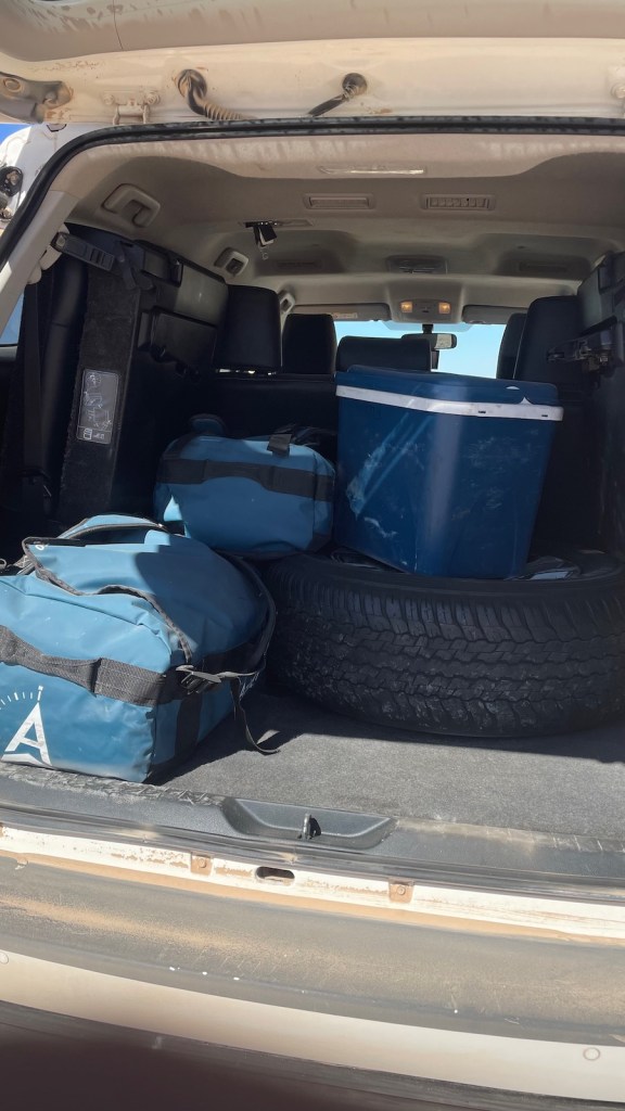 Le matériel à prévoir dans la location de voiture : 2 roues de secours qui valent mieux qu’une, une glacière pour avoir de l’eau fraiche en toute circonstance, un GPS (Garmin pour nous), une carte routière. Pas de panique pour s’orienter, il n’y a pas beaucoup de routes et les panneaux indicateurs sont présents à chaque intersection.