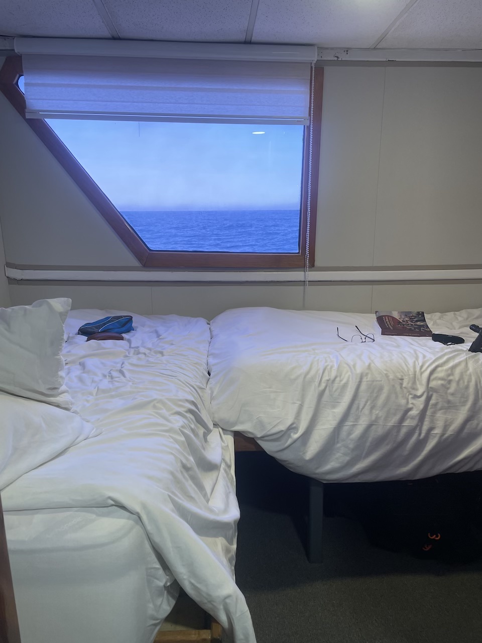 Nous naviguons sur le Nautilus Undersea, un navire d’exploration océanographique lancé en 1968. Il a été modernisé en 2017 pour en faire un bateau confortable (stabilisation).