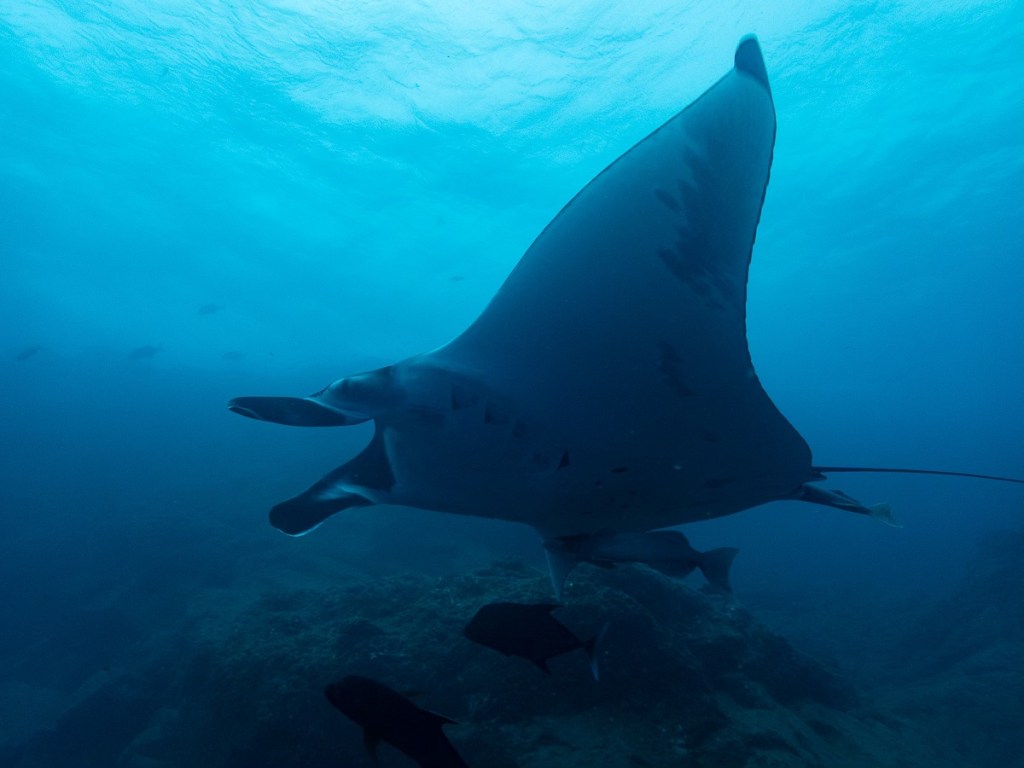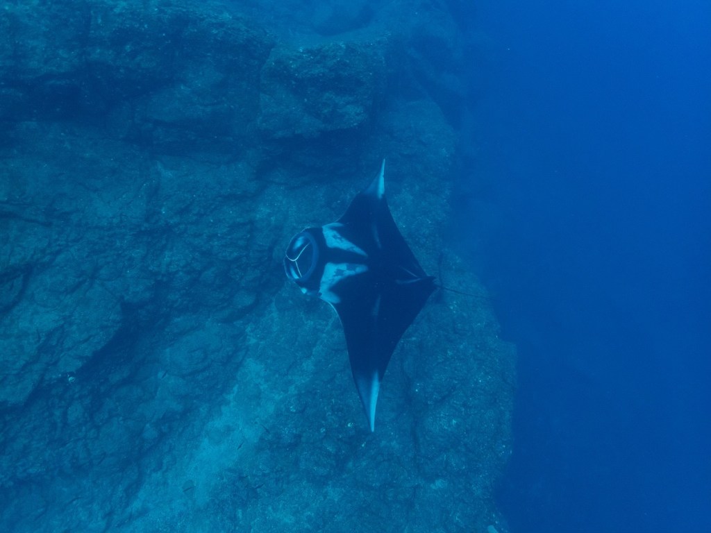 C’est le spot idéal pour chausser ses palmes et vérifier la flottabilité. Ce n’est pas pour autant un site ennuyeux. Notre première manta est passée tout près de la palanquée après 5 minutes de plongée ! Ce récif escarpé est composé de langues de lave, de canaux de sable et de coraux clairsemés. Nous y avons croisé des requins de récif, des murènes, une raie pastenague surdimensionnée et d’énormes langoustes.