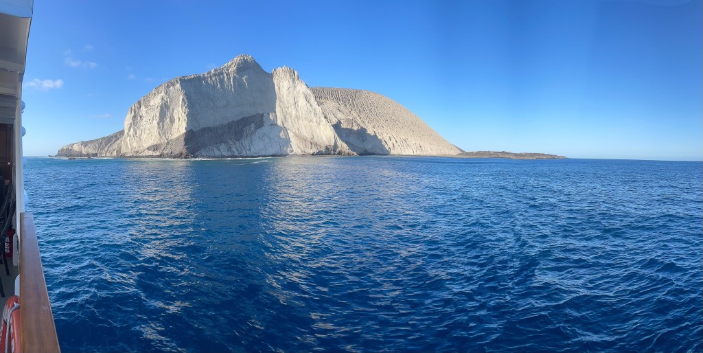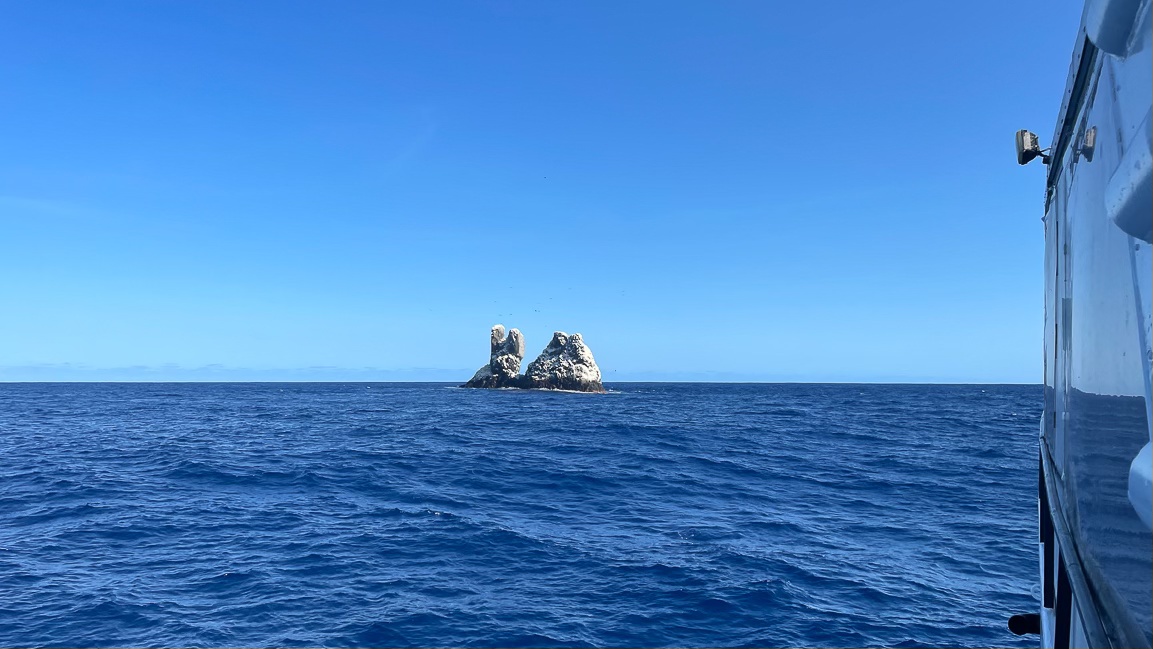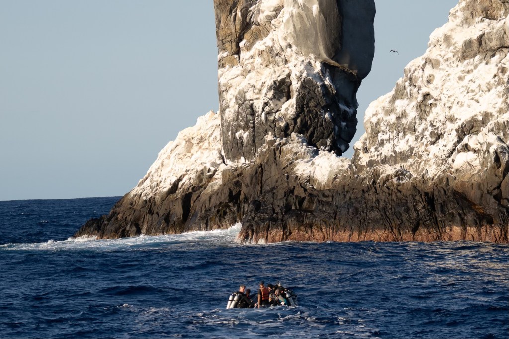 Roca Partida est un pinacle isolé, situé à une cinquantaine de kilomètres de San Benedicto, 8 heures de navigation quand même. Il s’élève des profondeurs et constitue le seul abri naturel au milieu de l’étendue d’océanique.