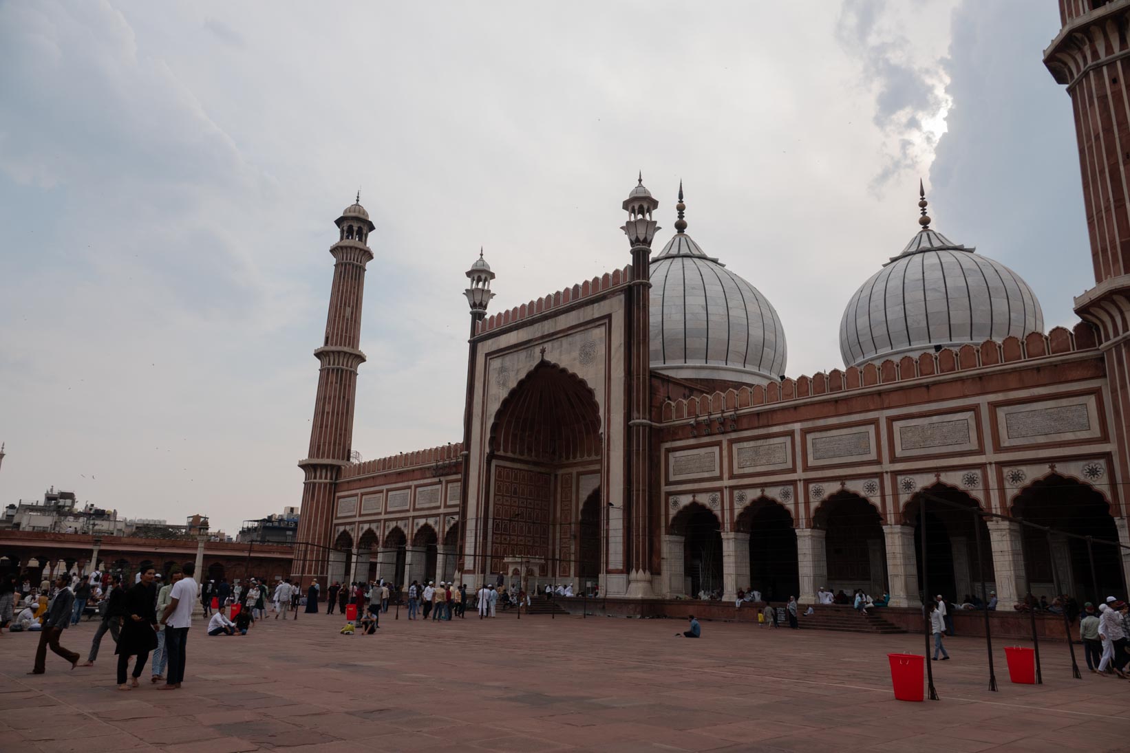 Nous commençons par une visite rapide à la mosquée (Entrée : 300 INR par personne). Jama Masjid est la mosquée du vendredi, construite entre 1644 et 1656 sous le règne de l’empereur Moghol Shâh Jahan, à l’extérieur du Fort Rouge. C’est la plus grande mosquée de l’Inde, elle peut accueillir jusqu’à 25 000 personnes. On doit simplement se déchausser avant d’entrer et enfiler une longue blouse pour les femmes.