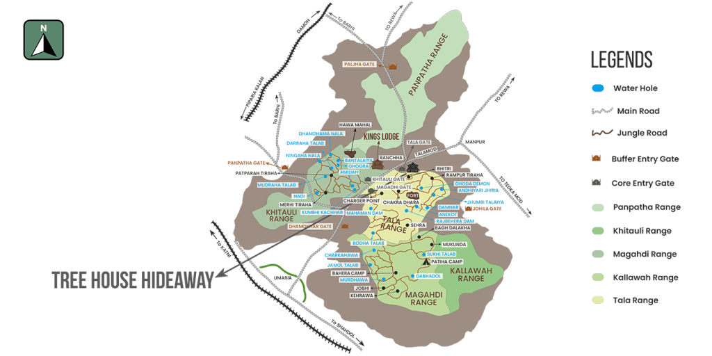 La réserve de tigres de Bandhavgarh s’étend sur les collines de Vindhya, à la limite nord-est de l’état du Madhya Pradesh. La réserve se compose d’une zone centrale de 105 km² et d’une zone tampon d’environ 400 km². À noter que c’est la superficie et la présence de tigres évidemment, qui distingue une Tiger Reserve d’un parc national.