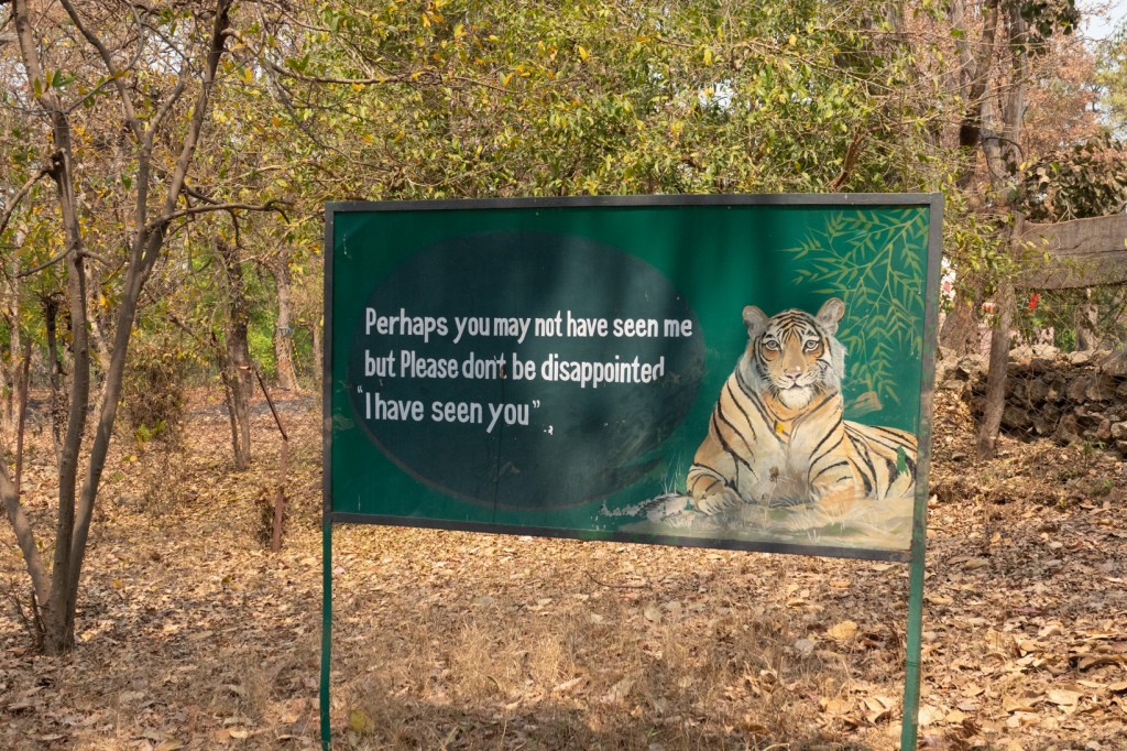 Ce panneau m’a beaucoup amusé ! En fait, il faut être malchanceux pour ne pas voir de tigre à Bandhavgargh, nous en avons vu chaque jour…