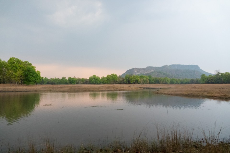 La topographie de l’ensemble de la zone varie entre des crêtes abruptes, des forêts de sal (Shorea robusta) et des prairies ouvertes, plusieurs étangs naturels ou artificiels.