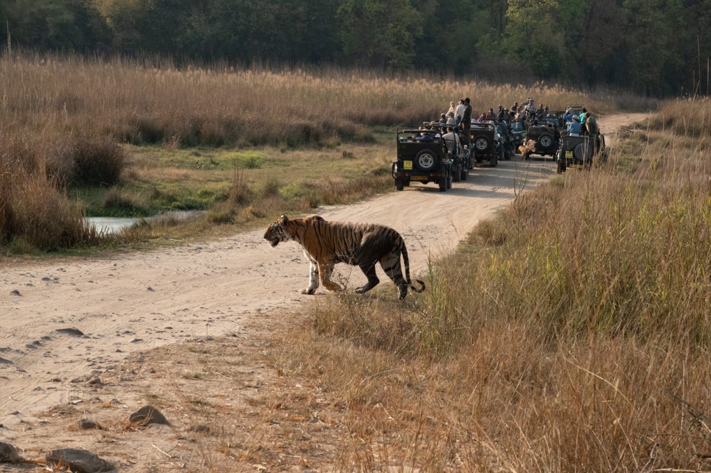 La visite des parcs nationaux indiens est très règlementée. Un nombre limité de véhicules (20) sont autorisés à participer aux safaris, pour une heure de départ précise et dans une zone déterminée. Il est donc essentiel de réserver à l’avance. Les horaires et la capacité des safaris dépendent de la saison et des autorités. En mars, les horaires de safari sont les suivants : 6:00 à 9:30 le matin et de 15:00 à 18:30 l’après-midi. Tous les parcs indiens sont fermés le mercredi après-midi.