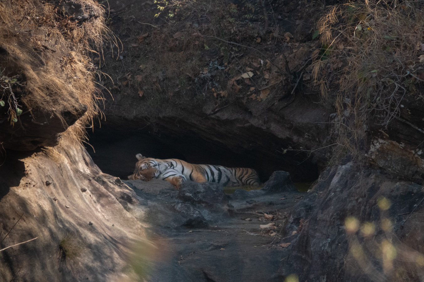 Le parc national de Bandhavgarh est divisé en trois zones principales. La zone principale de Tala est la plus convoitée car les tigres y sont fréquemment observés. La zone voisine de Magadhi offre de bonnes chances de voir des tigres, elle a été très productive en ce qui nous concerne. Enfin, Khitauli est moins fréquenté par les tigres mais elle est propice à l’observation des oiseaux.