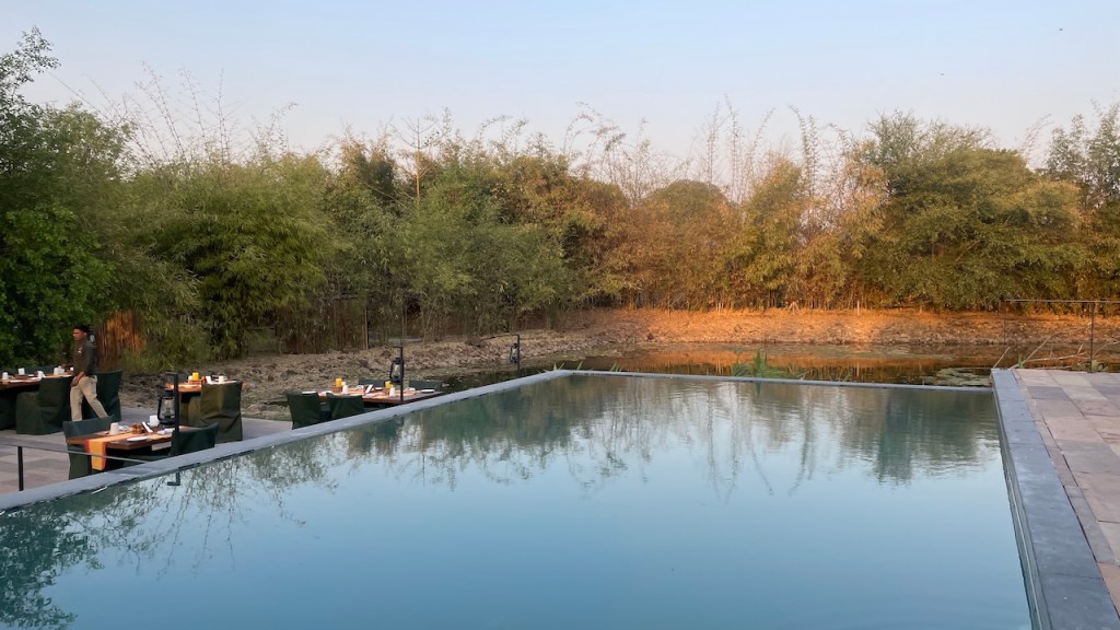 La piscine, bien fraiche et avec sa terrasse spacieuse, est très agréable. La bibliothèque propose une sélection de livres sur la faune locale. Un spa proposent des massages ayurvédiques.