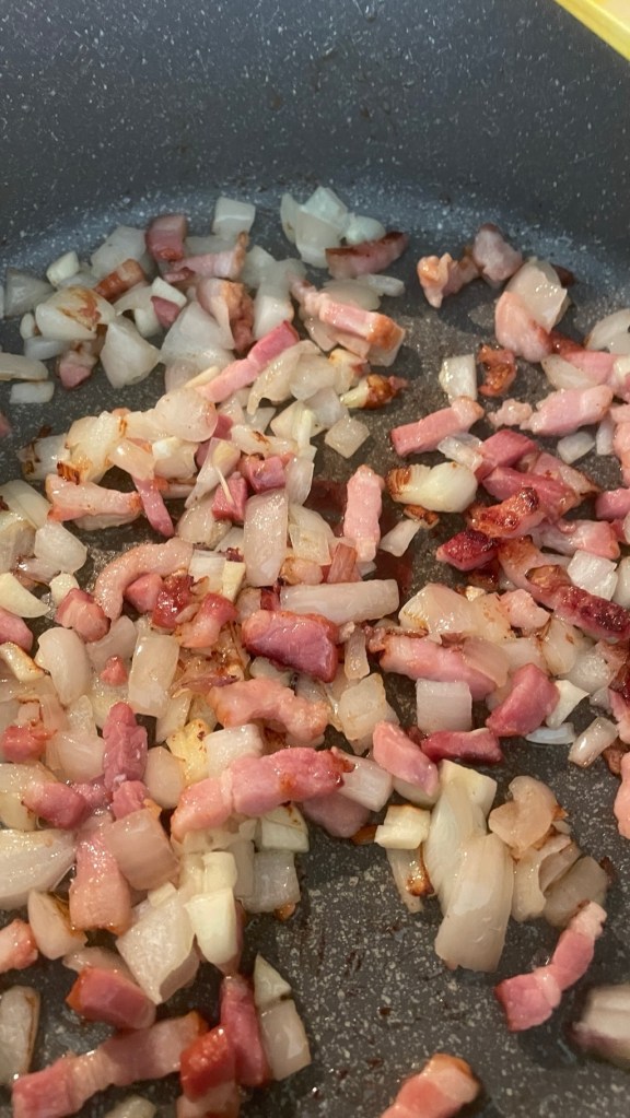 Dans une grande poêle, faire revenir les lardons (ou du bacon).