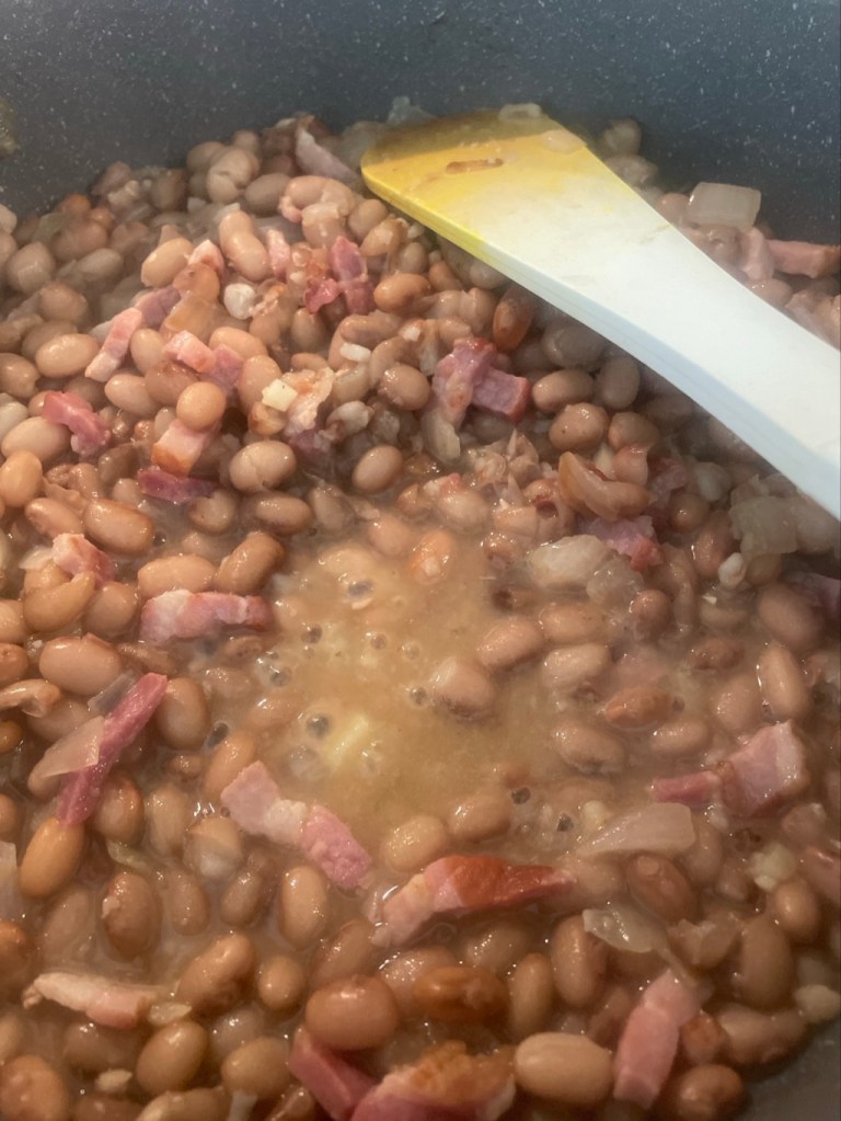 Ajouter le reste des haricots (avec le bouillon) et laisser cuire à feu doux jusqu’à ce que le bouillon épaississe, entre 10 à 20 minutes environ. Saler à votre goût.