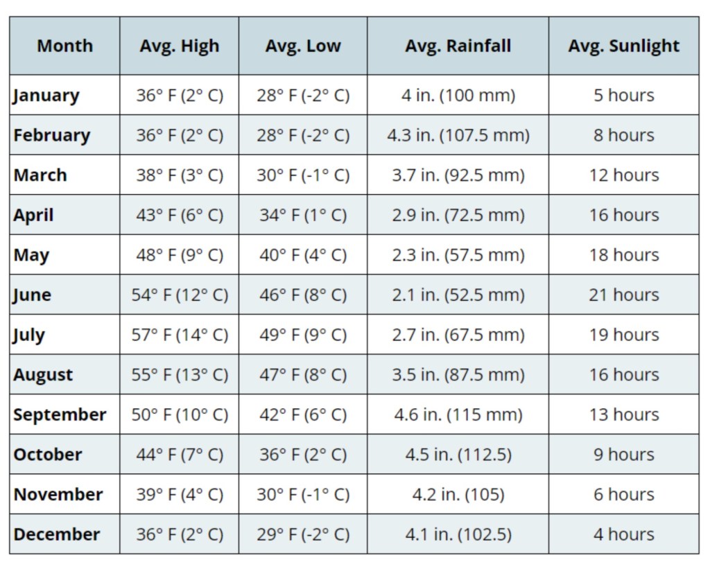 Toutes ces sources précieuses m’ont permis de choisir la période – ce sera en juin pour avoir une « bonne météo », de longues journées et en espérant éviter la grande foule – et de déterminer la durée de notre séjour – 2 semaines.