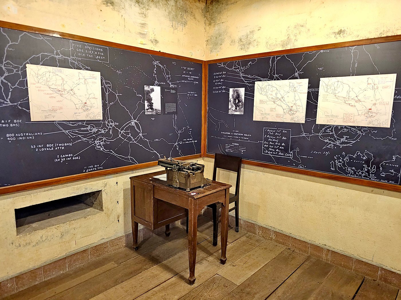 Nous avons choisi l’expérience Battlebox améliorée, avec guide audio de 40 minutes qui donne un accès exclusif à deux salles de projection à 270°. Dans la salle « The Day Before Room », une projection transporte les visiteurs dans les moments clés qui ont précédé la chute de Singapour. C’est avec deux paires de lunettes 3D anaglyphes que l’on pénètre ensuite dans la salle « The Moments Before » pour comparer les points de vue des Japonais (lunettes rouges) et des britanniques (lunettes bleues) sur la bataille. Plutôt efficace pour comprendre que les uns étaient motivés, voire enragés et que les autres n’avaient ni l’envie, ni vraiment les moyens de se battre.