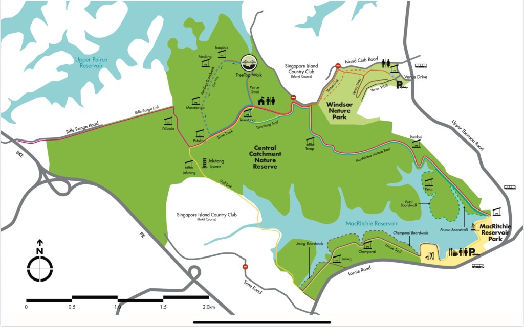 La réserve naturelle de Central Catchment est réputée être le meilleur site pour observer les oiseaux forestiers à Singapour. Le réservoir MacRitchie est le plus ancien (1867) et le plus grand réservoir de Singapour. Il contient 10 millions de mètres cubes d’eau et s’étend sur 12 hectares. Il est entouré de forêts, primaire et secondaire.