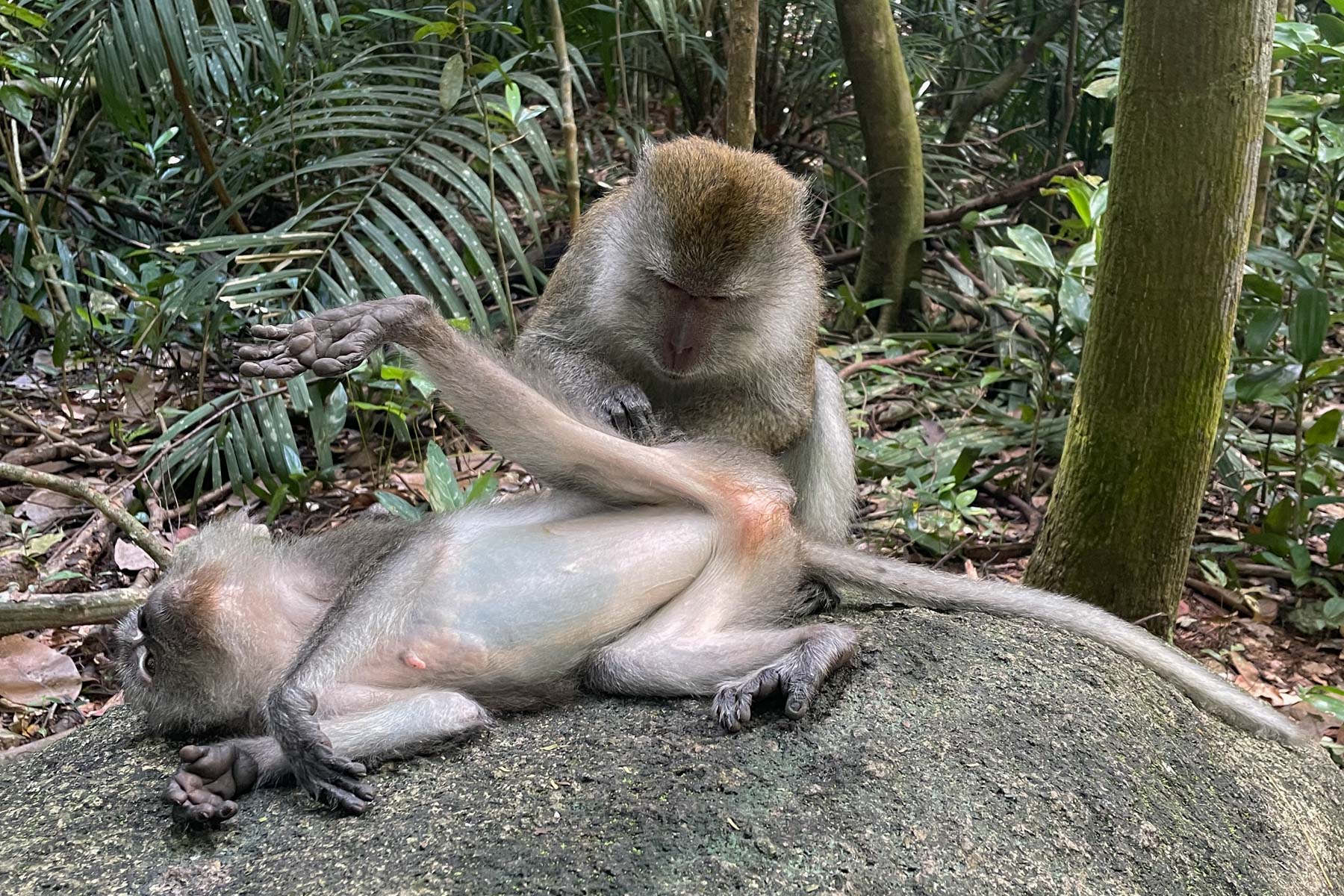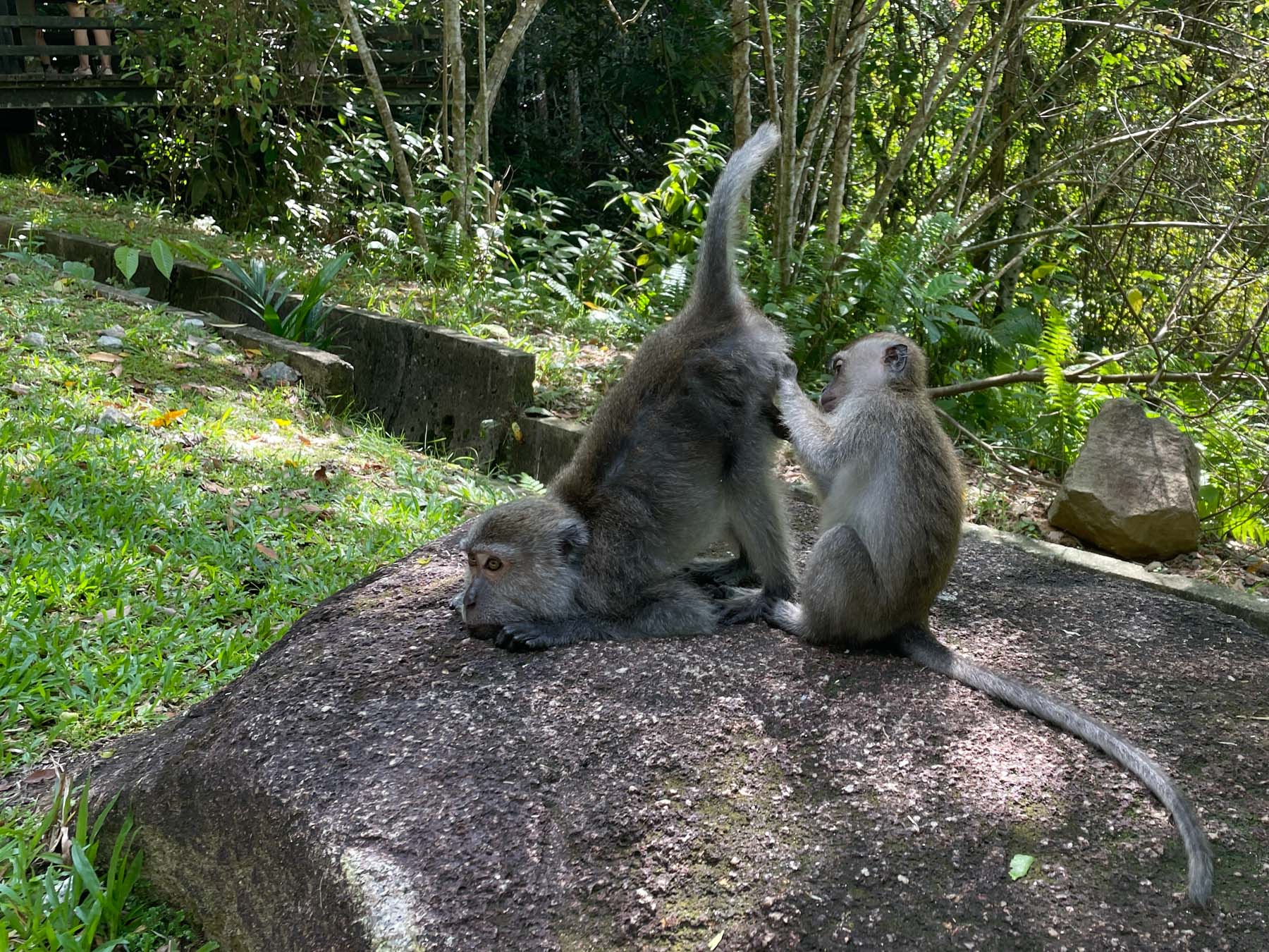 Dans ce secteur et près de la station des rangers, la proximité avec les singes a sauvé notre rando ! Nous avons eu de jolies observations, avec des comportements de grooming intéressants.