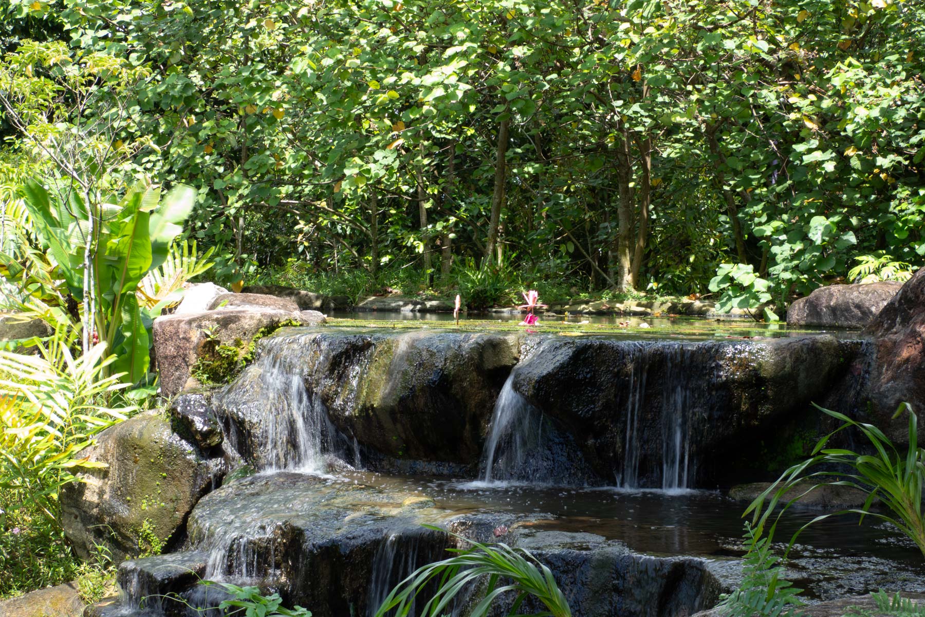 Plusieurs cascades ont été aménagées pour permettre une circulation d’eau entre les étangs.