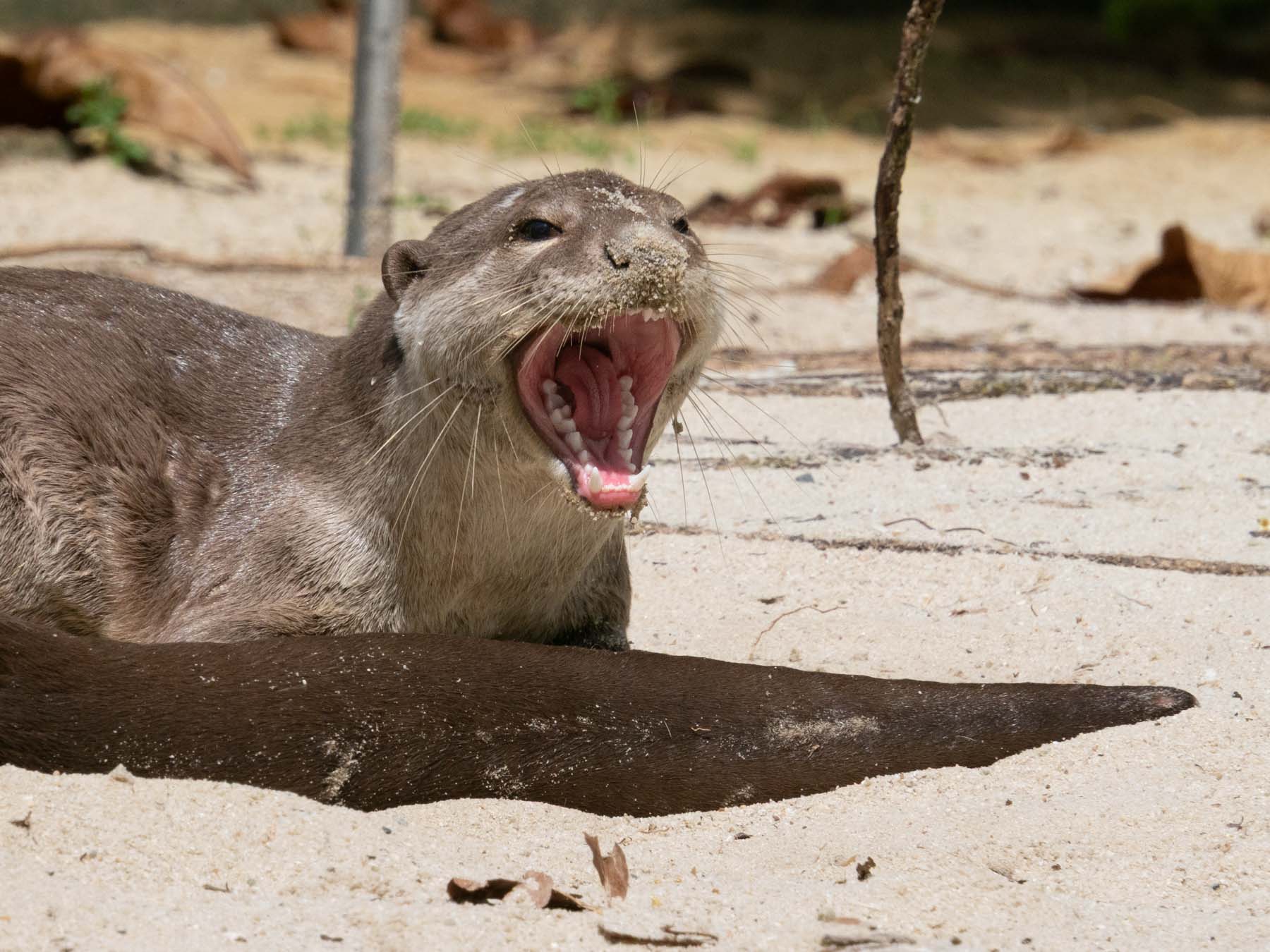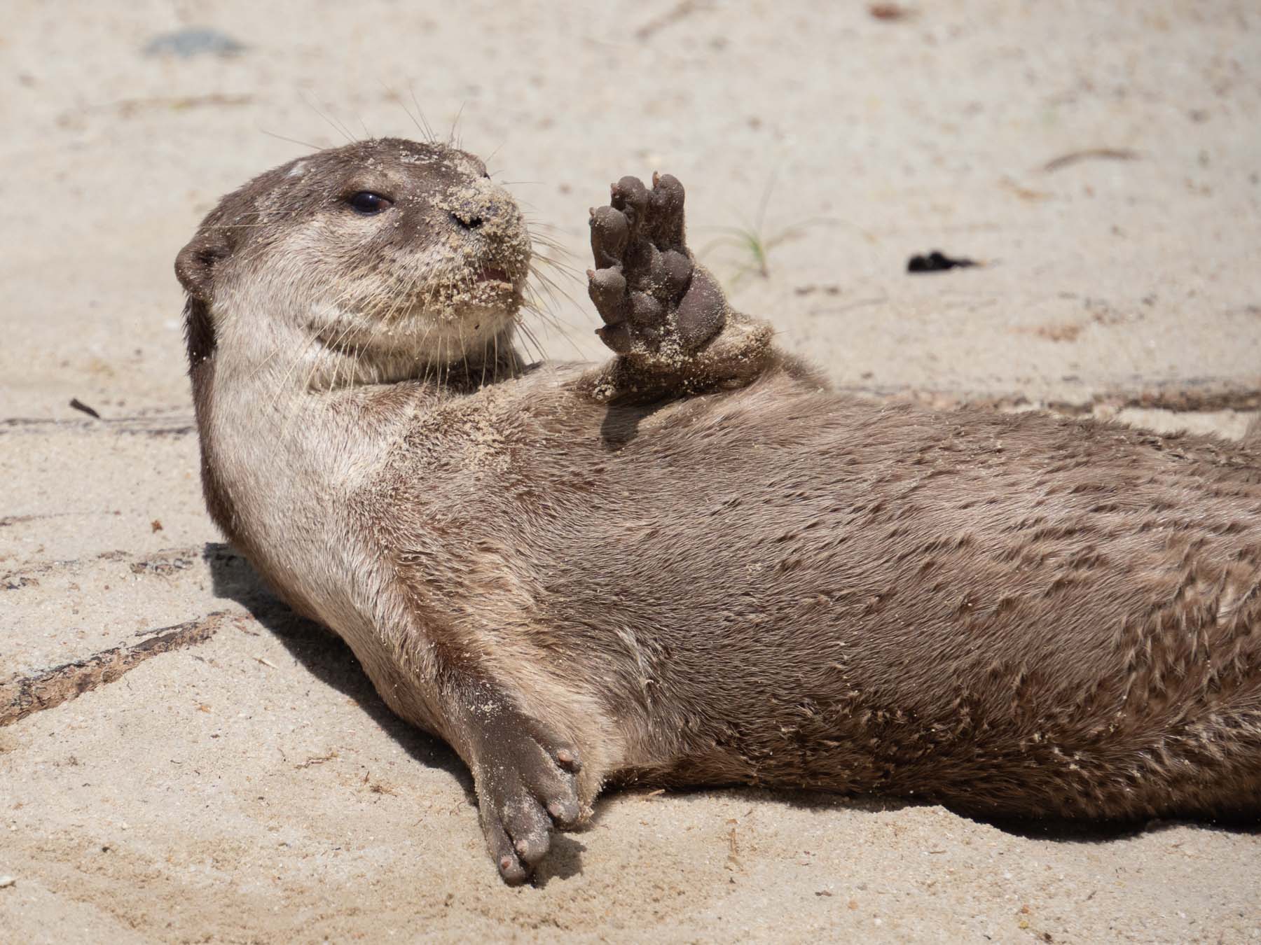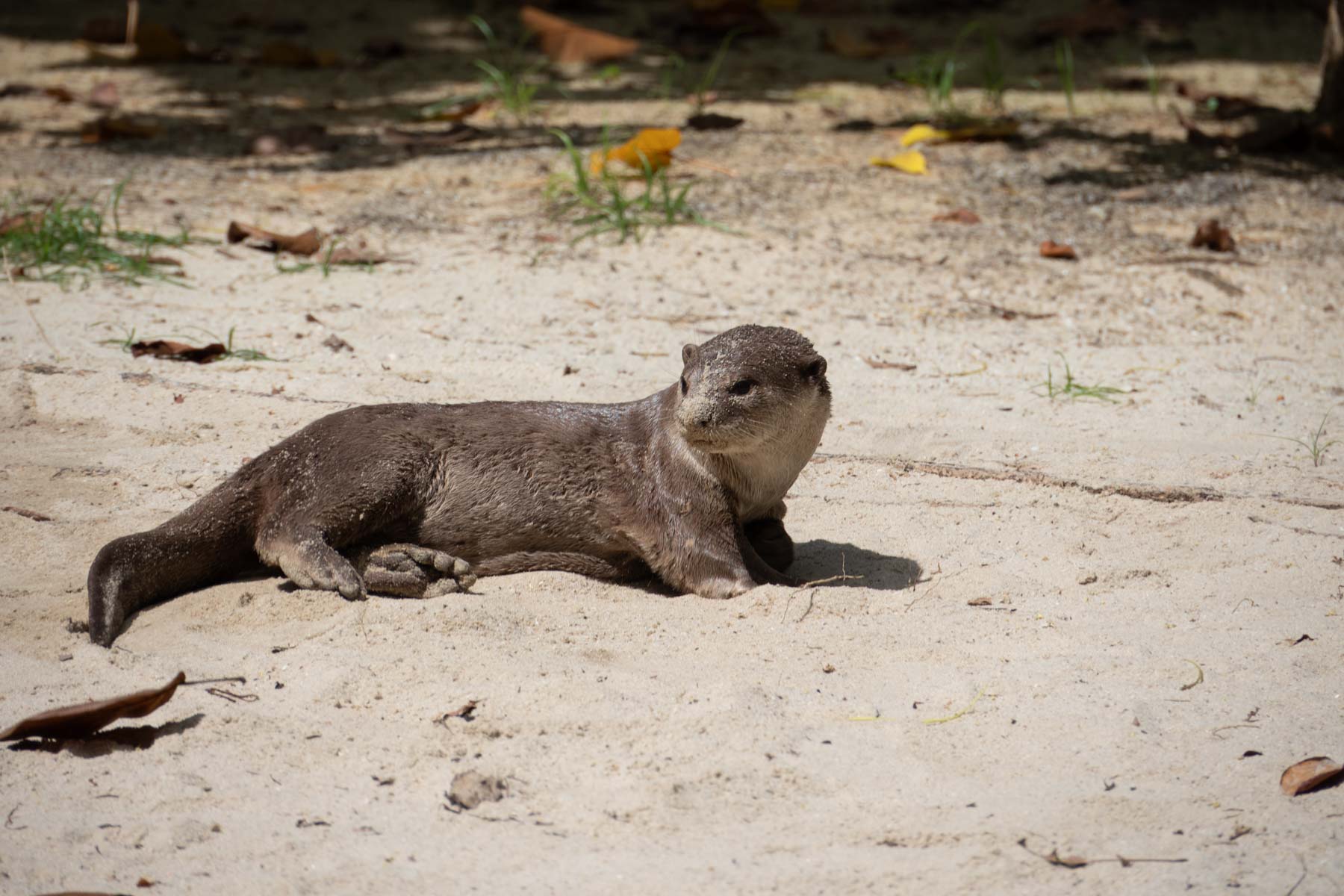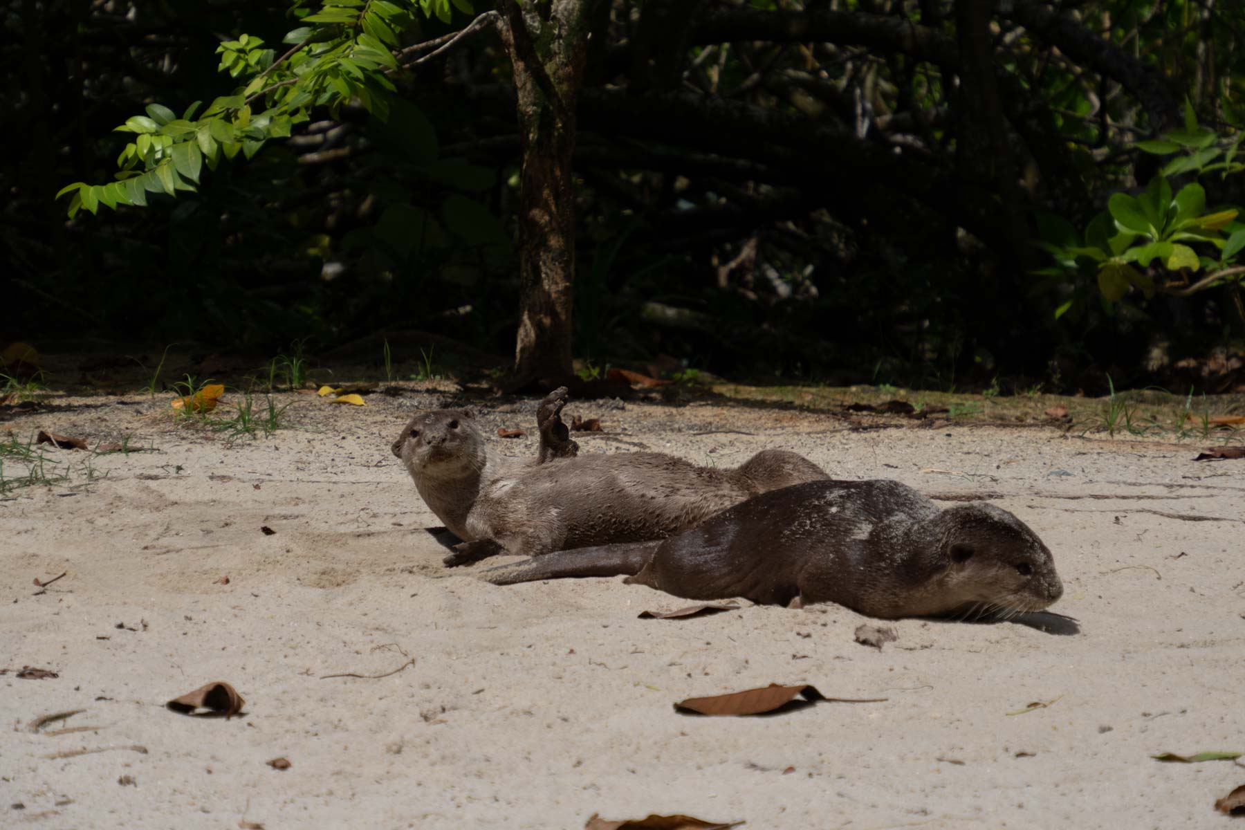 La cerise sur le gâteau, ce sont les loutres à pelage lisse. Nous avions justement vu avant de partir l’excellente série « Les loutres des quartiers chics » sur Canal + (Otter Town en anglais). La série raconte le quotidien de trois familles de loutres et leurs interactions pour la domination de leur territoire. Nous avons eu la chance d’observer un jeune couple (certainement de la famille de la baie) prenant un bain de sable.