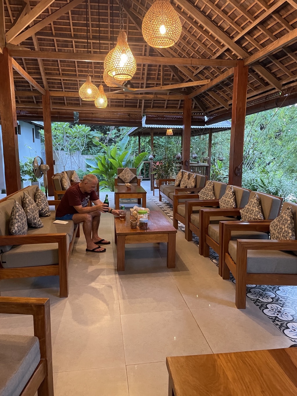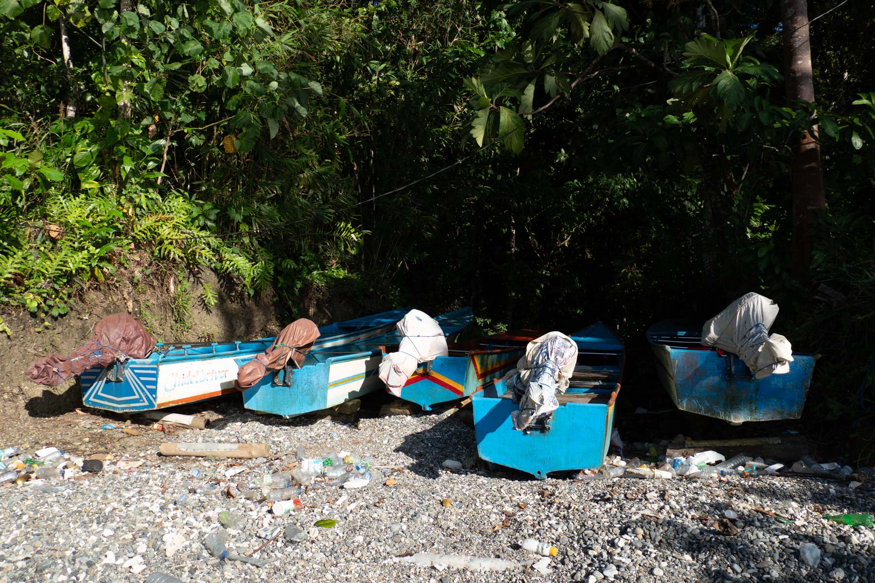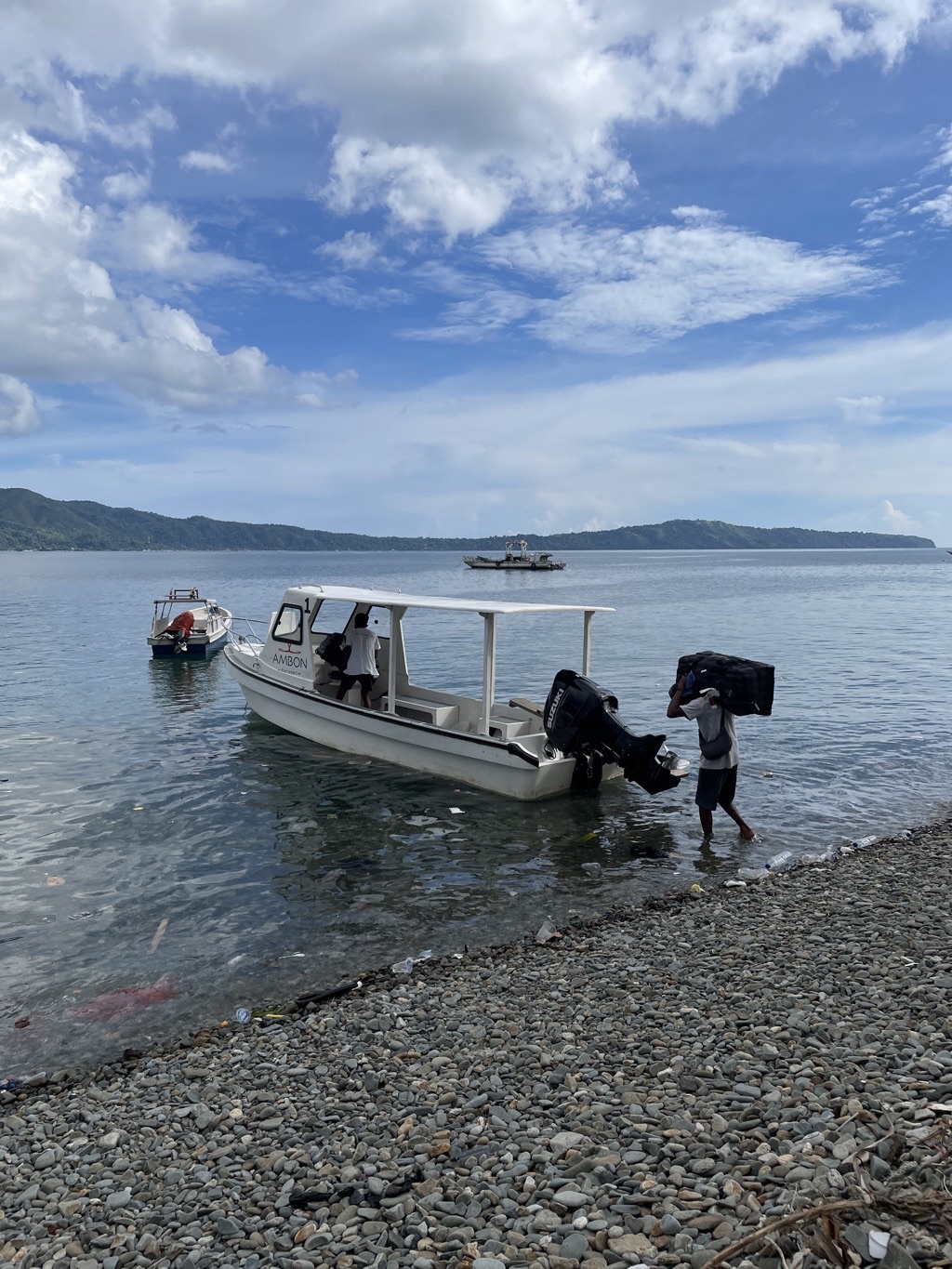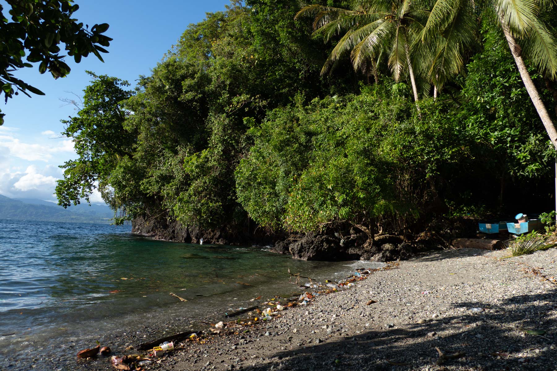 Le cadre de cette baie serait enchanteur, avec les bateaux que les pêcheurs remontent sous les arbres et les enfants qui pêchent, s’il n’y avait la pollution endémique à la baie d’Ambon. Malgré la collecte journalière des déchets par le staff, la mer ramène inlassablement du plastique. Le lodge incinère ses déchets, car la ville manque de points de dépôt d’ordure. Les autorités travaillent le sujet mais il faudra sans doute des années pour améliorer la situation et changer les mentalités.