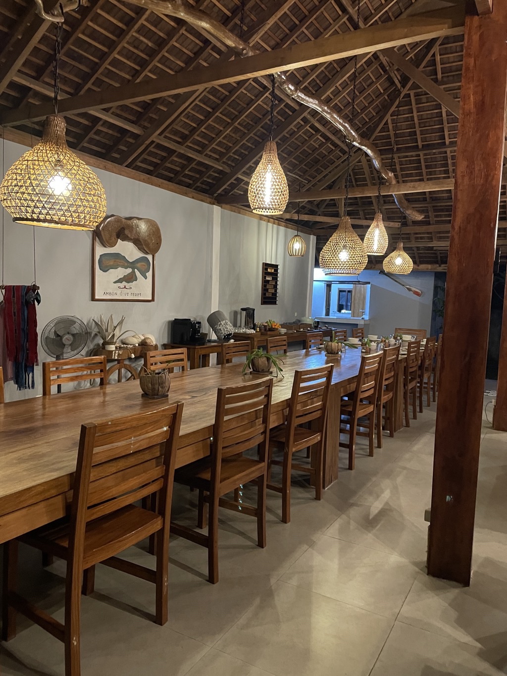 Ambon Dive Resort est une toute petite structure, avec seulement 8 chambres. Nous passons 11 nuits dans le bungalow Kenari, installé à flanc de colline. Les 4 bungalow sont spacieux (50m2) avec une salle de bain bien ventilée.