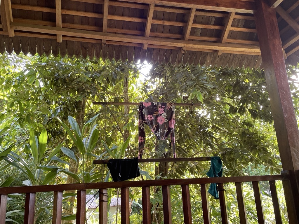On passe les après-midi sur la belle terrasse couverte, on observe la faune locale (!) et on peut aussi y faire sécher les maillots 😉