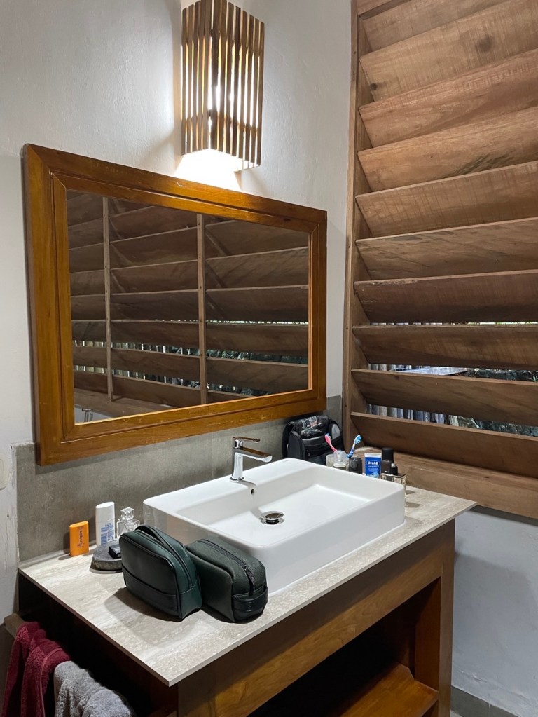 Une décoration de bon goût, de la place pour ranger ses affaires, des prises un peu partout pour charger les appareils, c’est parfait. La climatisation et la ventilation sont là pour le confort. Une bouilloire est à disposition, avec du thé et du café Bali, ainsi que de l’eau.