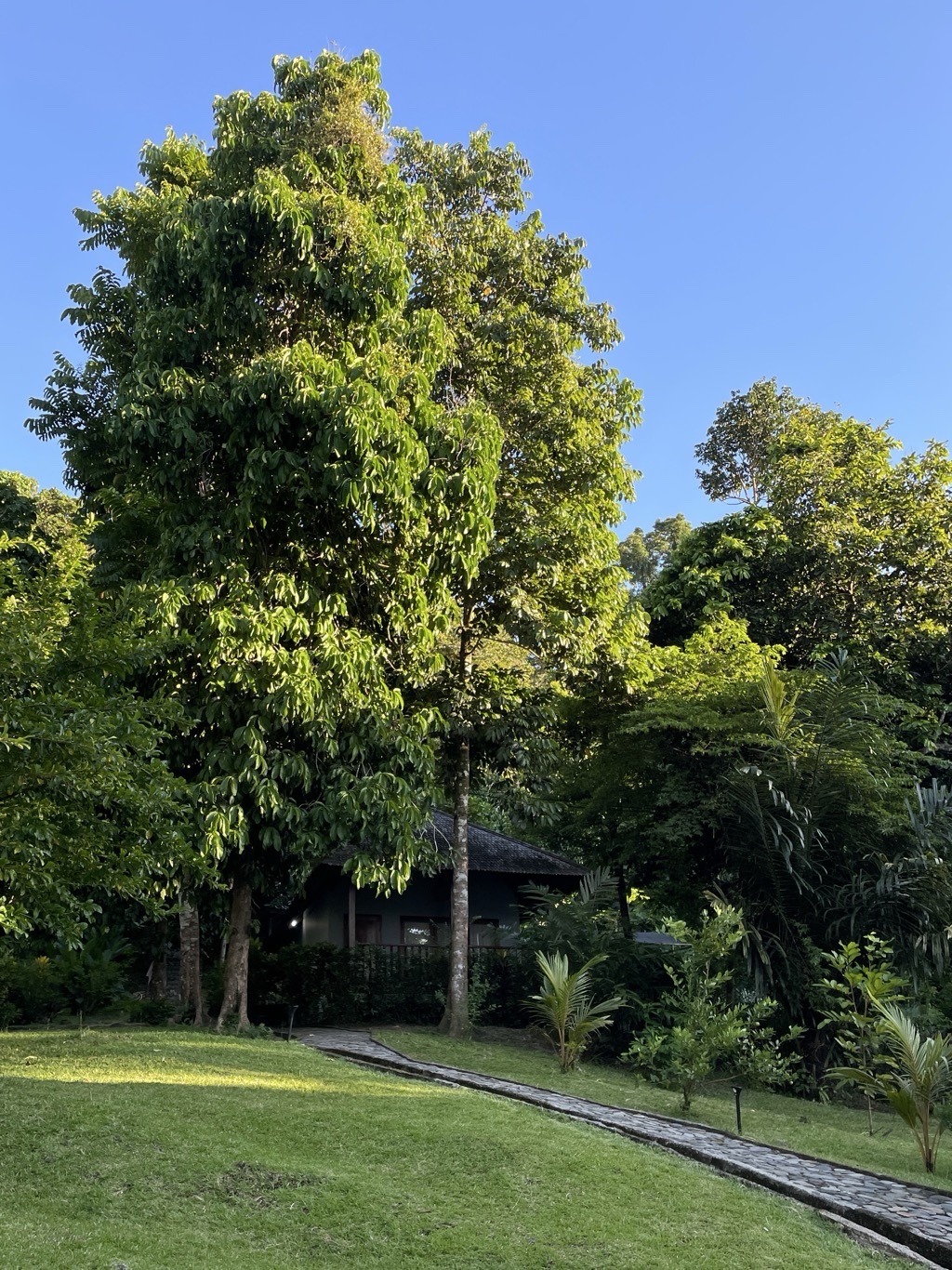 J’ai bien aimé le jardin, à la fois très bien entretenu, fleuri mais aussi sauvage avec ses grands arbres.