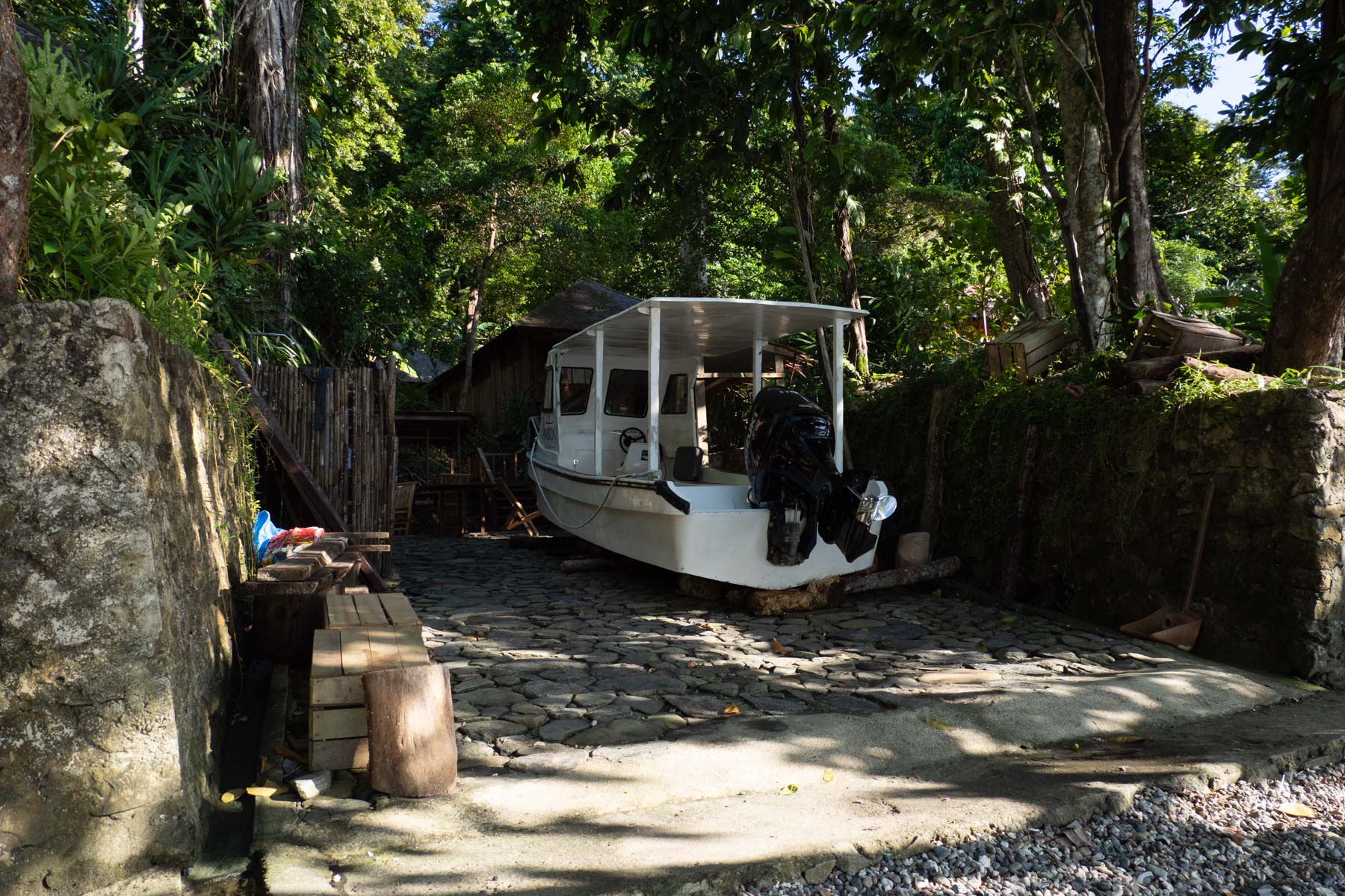 Le centre de plongée est fonctionnel, avec une grande salle photo et un espace extérieur pour s’équiper et ranger ses affaires au retour dans une caisse à son nom. Pour l’anecdote, cet espace est une ancienne rampe construite par les japonais pendant la seconde guerre mondiale. Les bateaux y étaient bien cachés.