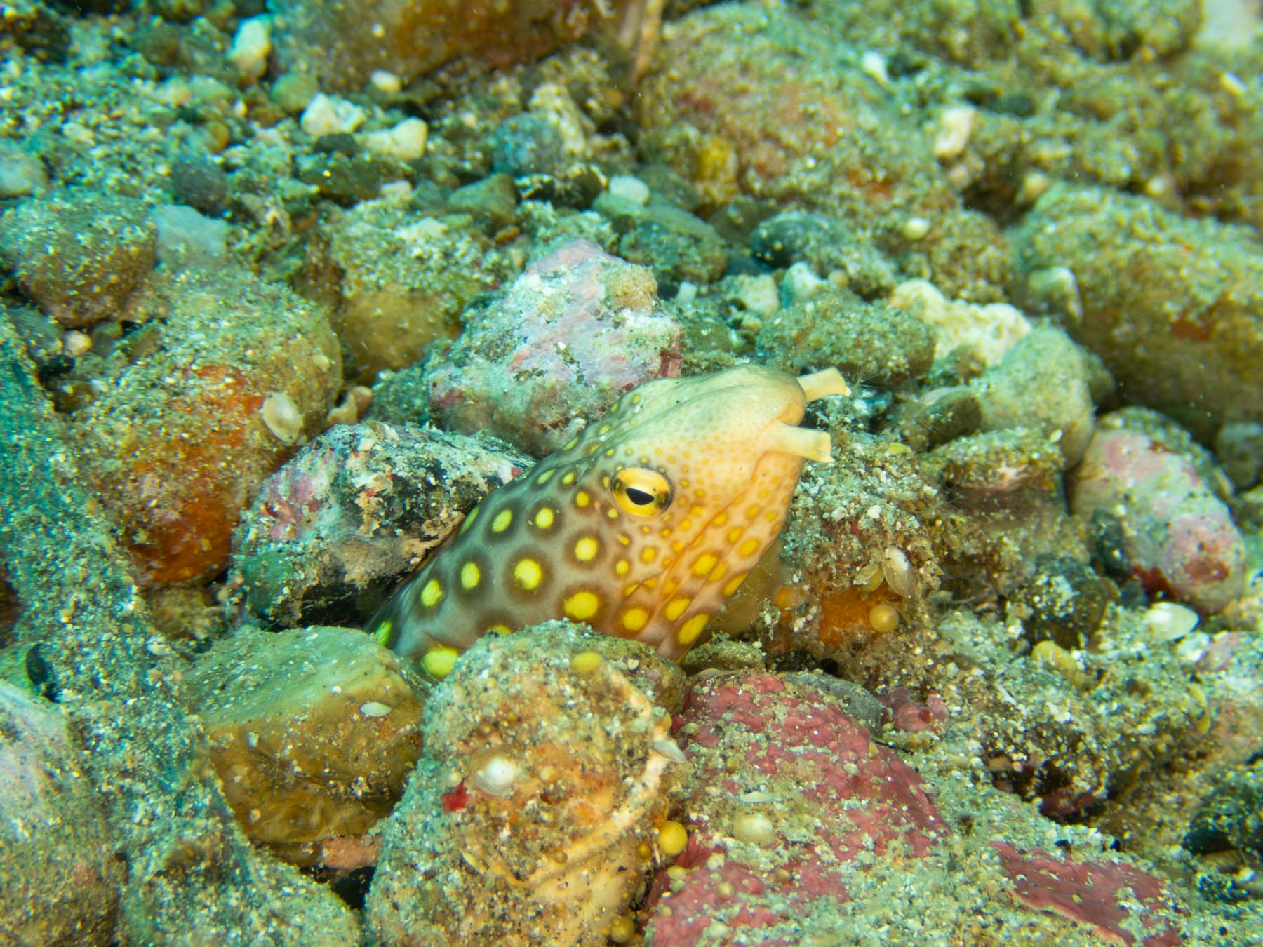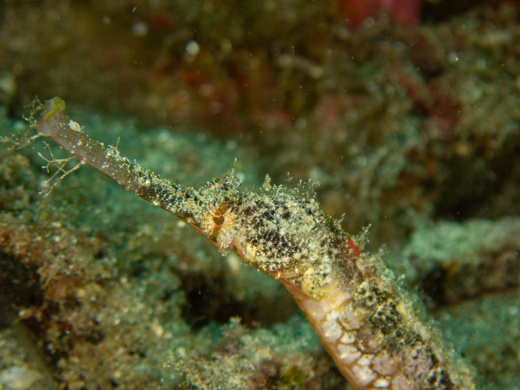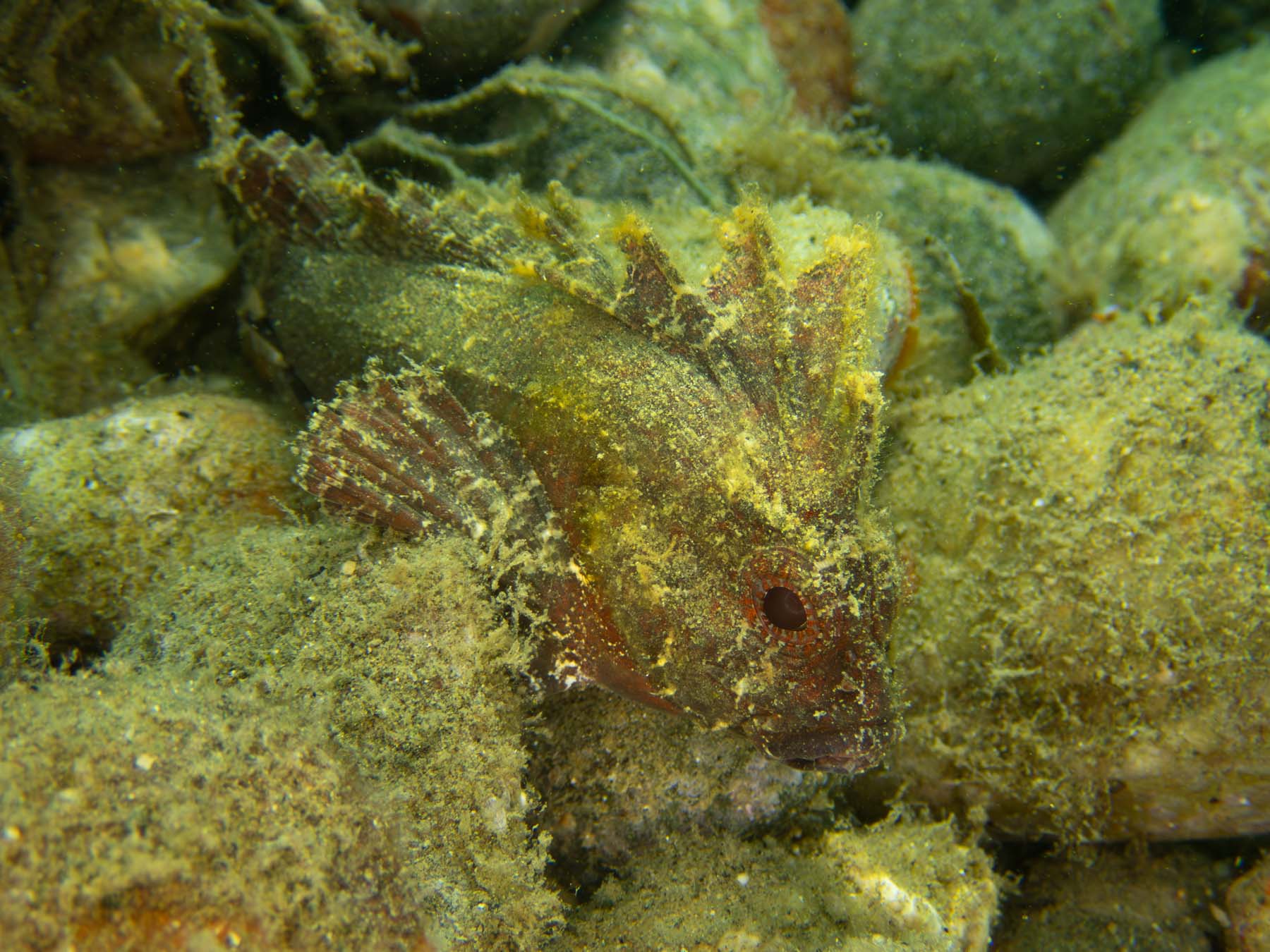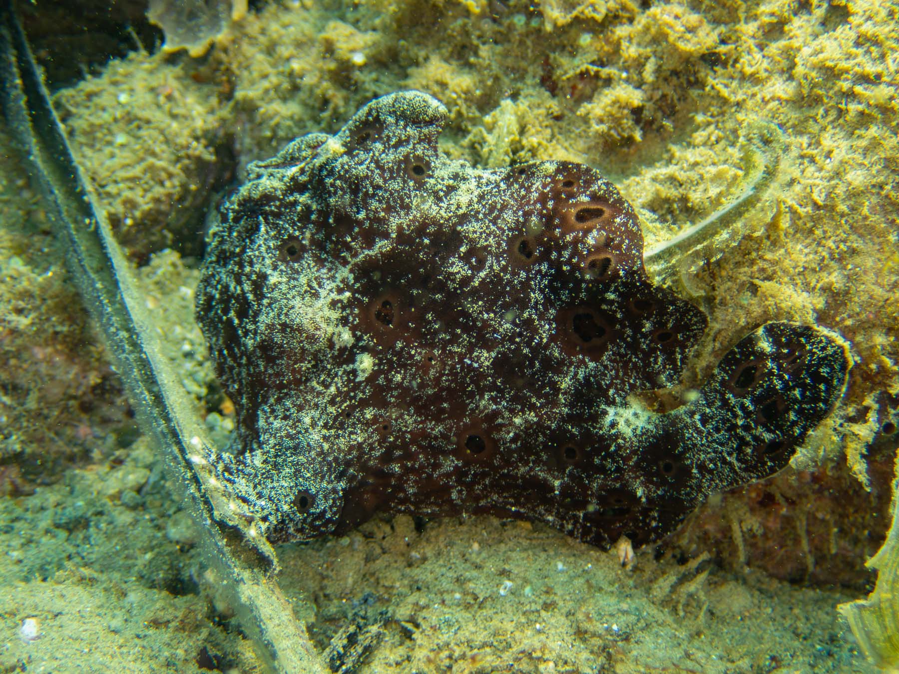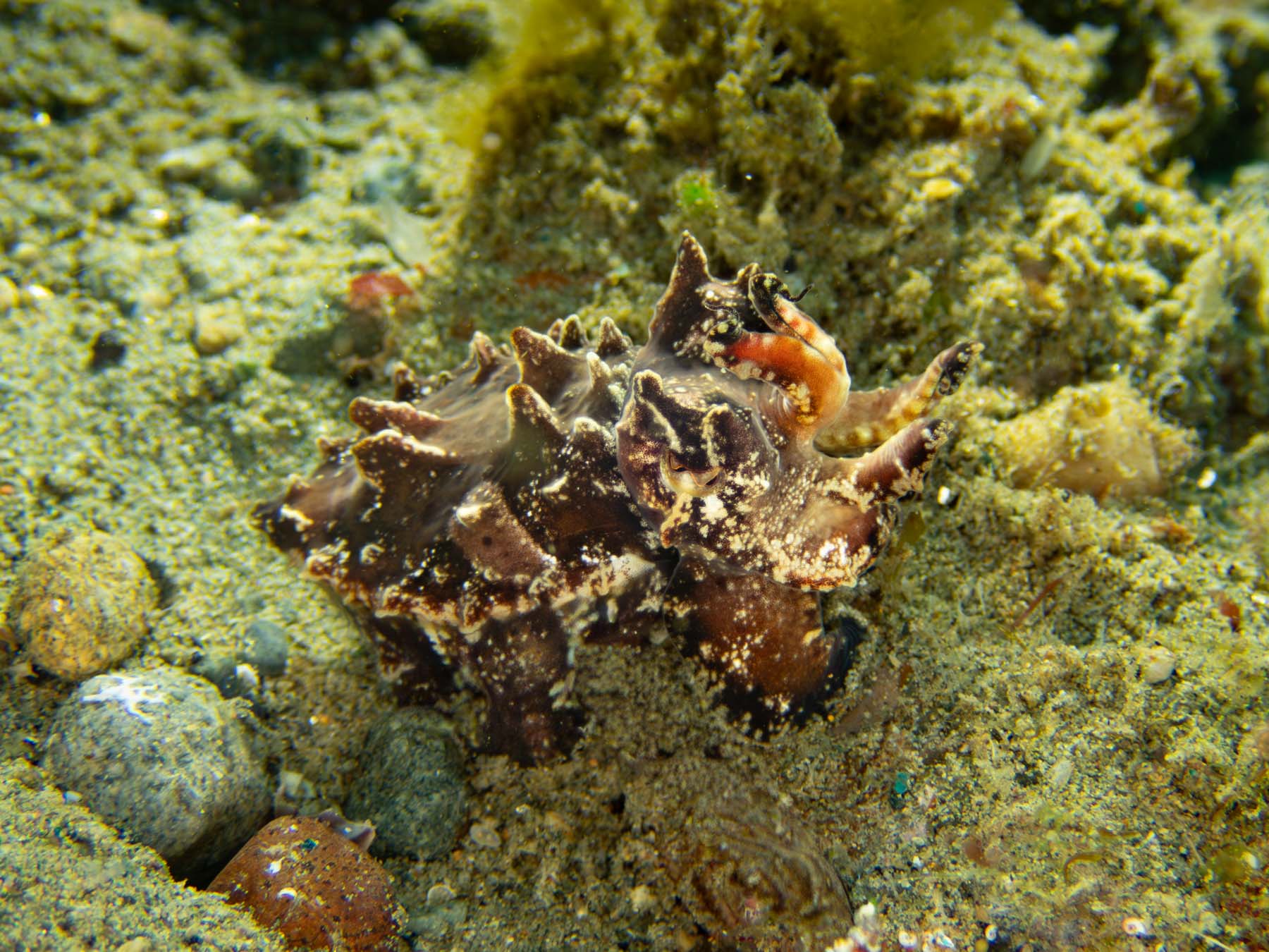 Les scorpaeniformes sont des poissons benthiques, avec une crête osseuse et souvent des épines venimeuses. Certaines espèces sont des maîtres dans l’art du camouflage. Les plongeurs viennent à Ambon pour voir des Rhinopias.