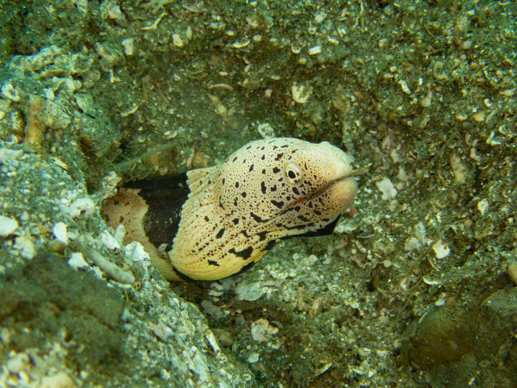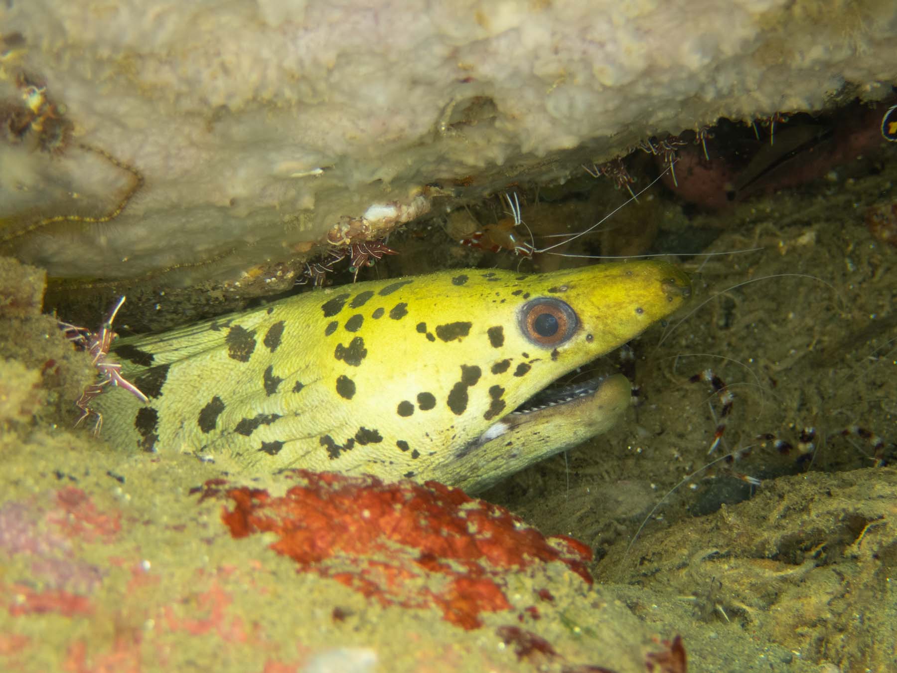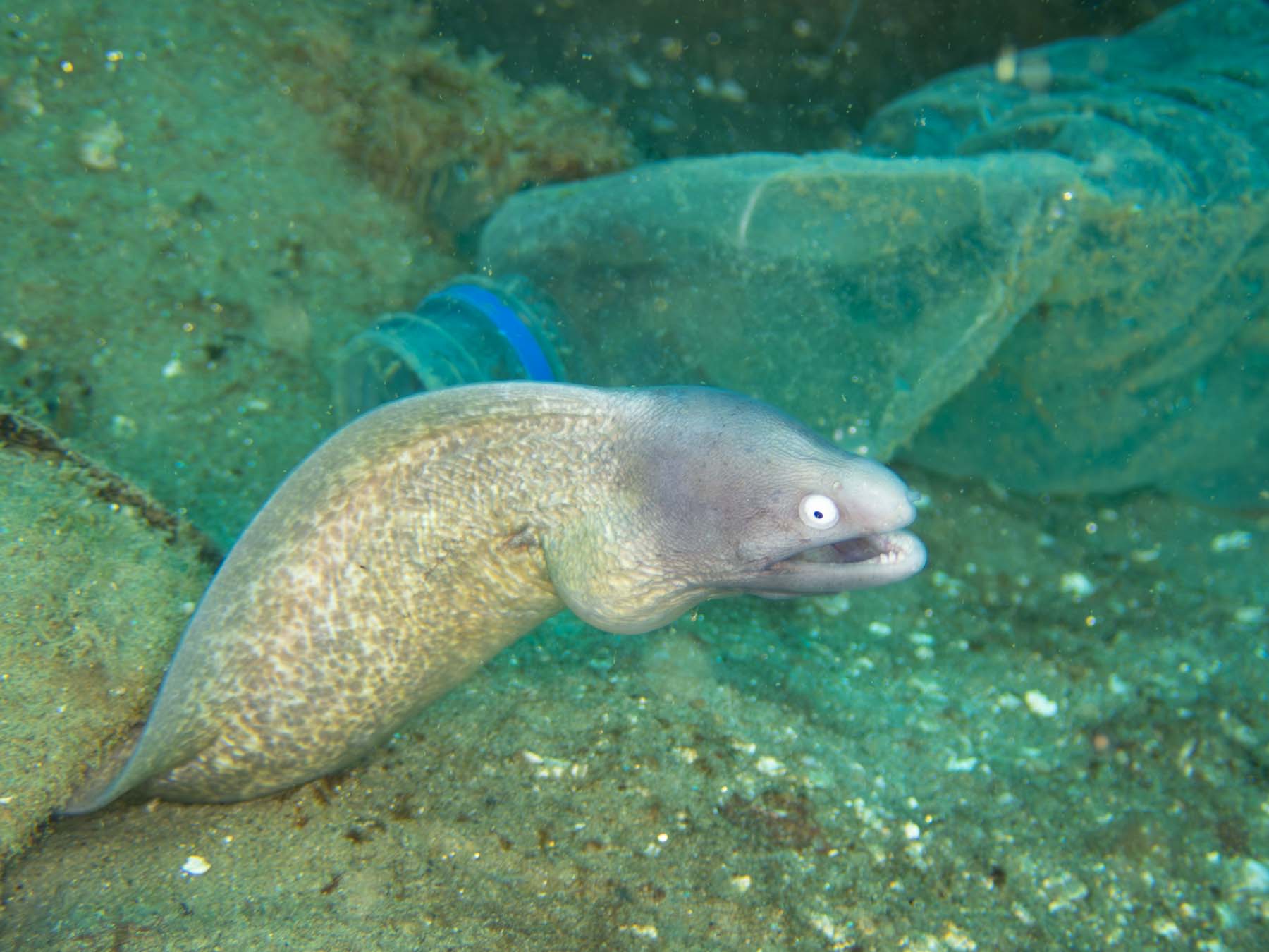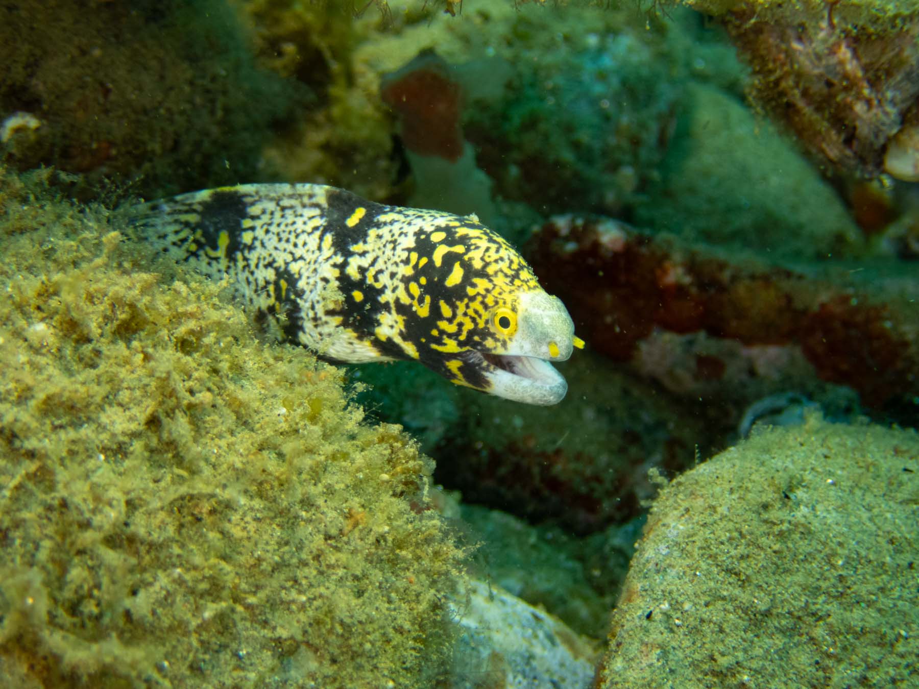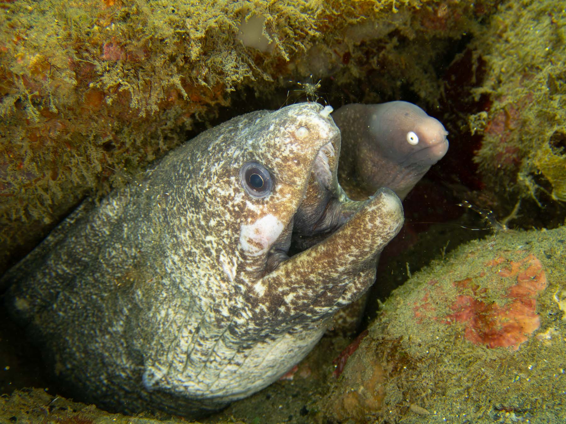 Mes poissons préférés ont toujours été les murènes. Leur corps allongé évoque le serpent. Elles n’ont pas de nageoires, mais des narines très visibles. Si elles exhibent une dentition impressionnante, elles sont paisibles si on ne les provoque pas. Je les trouve souriantes !