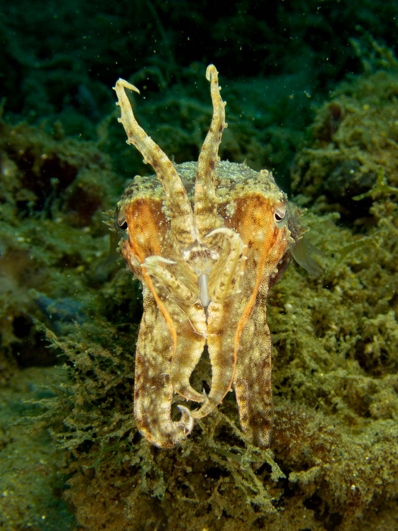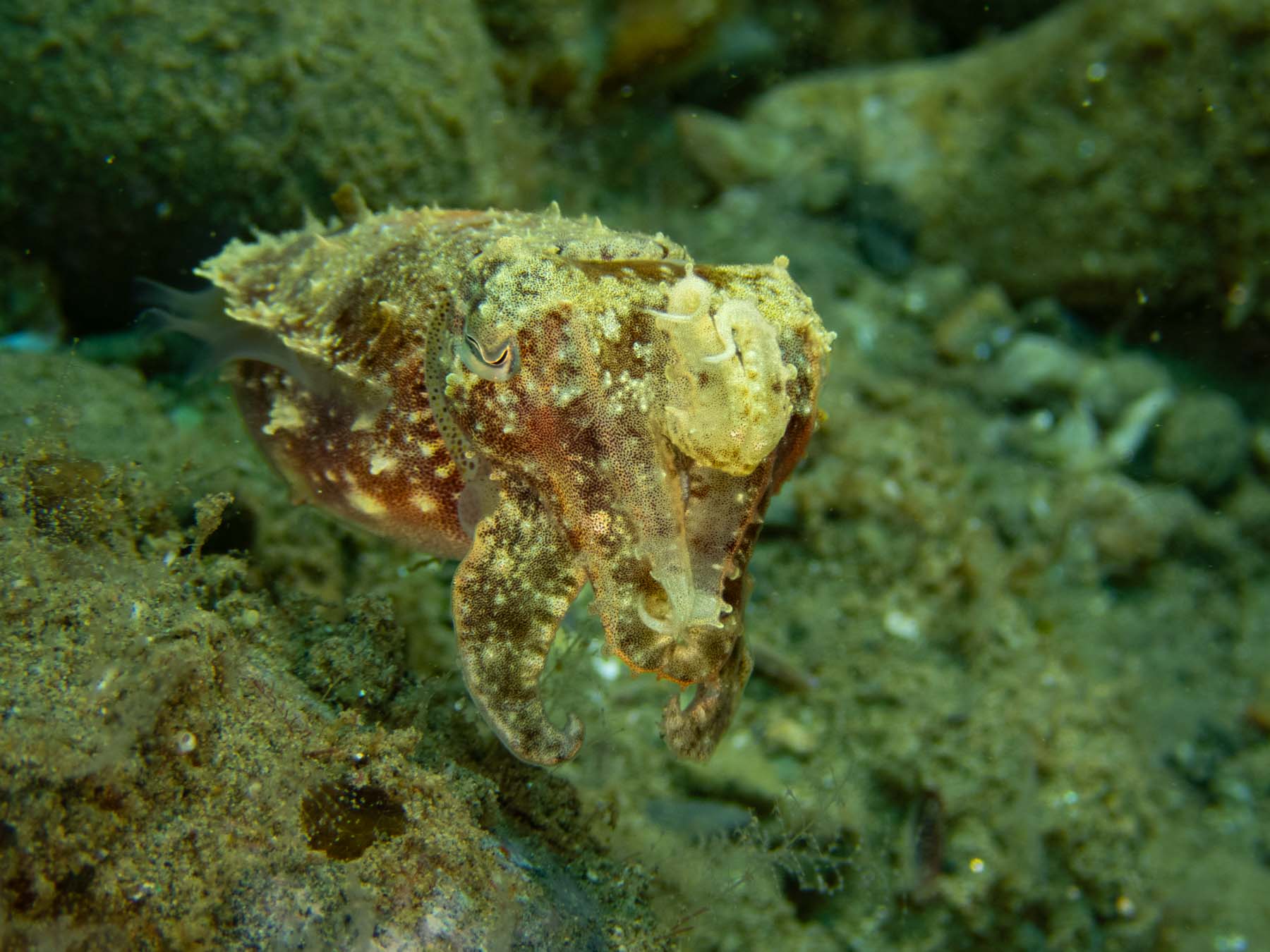 Les poulpes et seiches sont des sujets photographiques assez coopératifs, si on ne les bouscule pas. Les variations de texture et de couleur sont extraordinaires à observer.