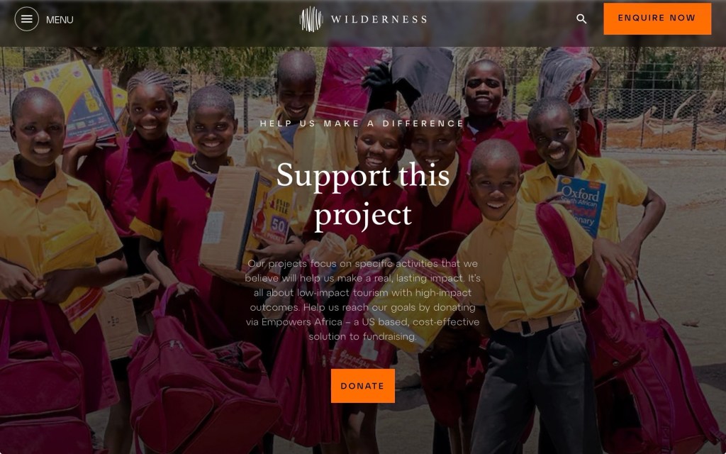 La compagnie Wilderness soutien depuis une vingtaine d’année Save Rhino Trust Namibia, en proposant à ses visiteurs des activités de rhino tracking. L’association reçoit un financement direct et bénéficie potentiellement du soutien ultérieur de ces visiteurs. Wilderness fournit du matériel, des équipements, des véhicules…